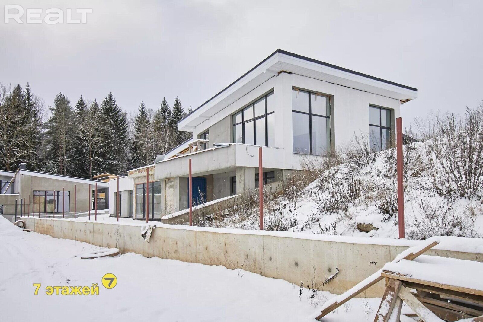 Снаружи он полностью готов, внутри требует чистовой отделки. Внутри есть баня, на террасе — бассейн. Отопление на газу, вода и канализация имеются. Стоит же такой дом 260 000 долларов.