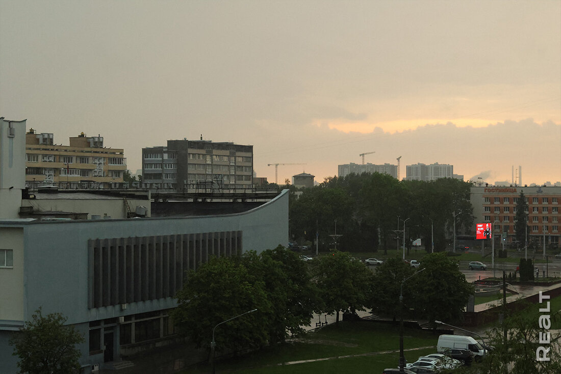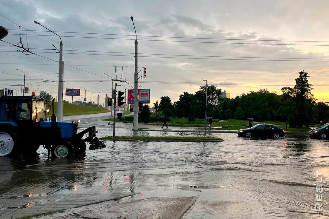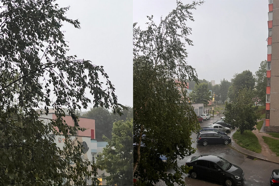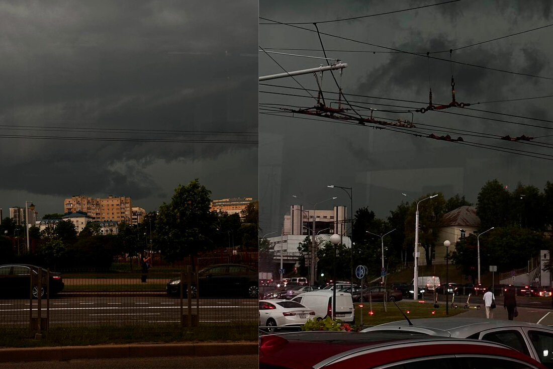 Первым стало заливать Гродно. Это началось еще около 17.00 5 июня. К 17.50 такая туча дошла к агрогородку Хатежино в Минском районе. К 18.30 мощный ливень в этой локации успокоился.