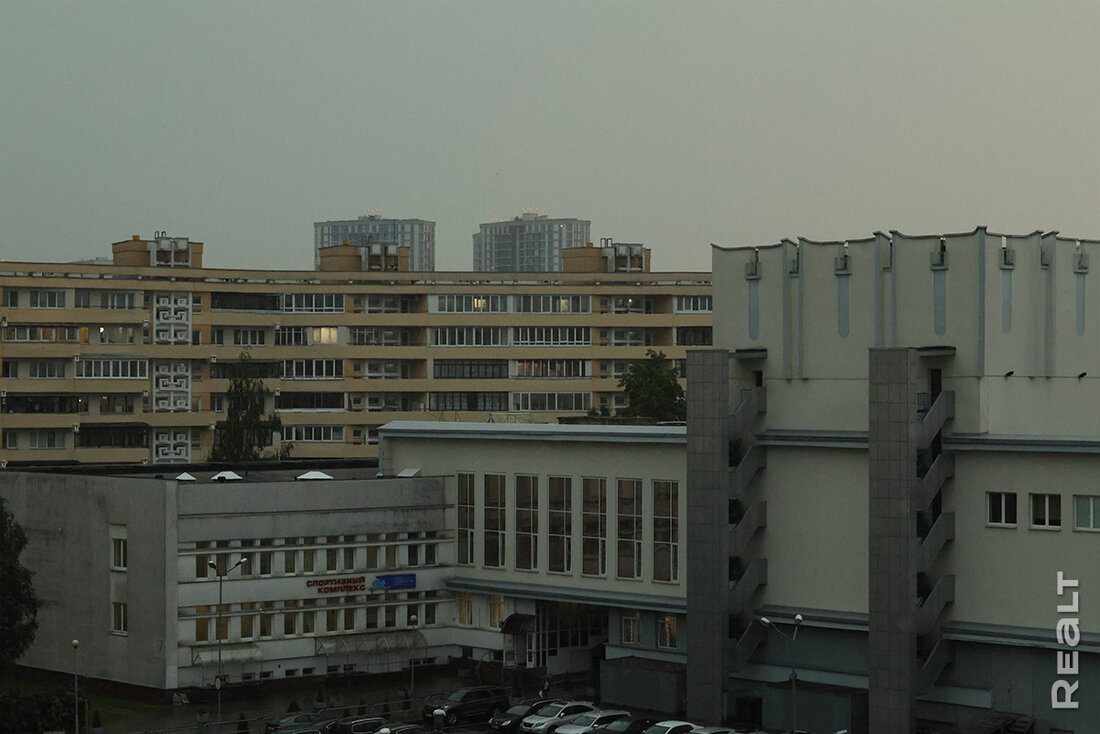 Около 18.20 затянуло небо и в Минске. На улице стало так темно, словно на улице уже ночь.