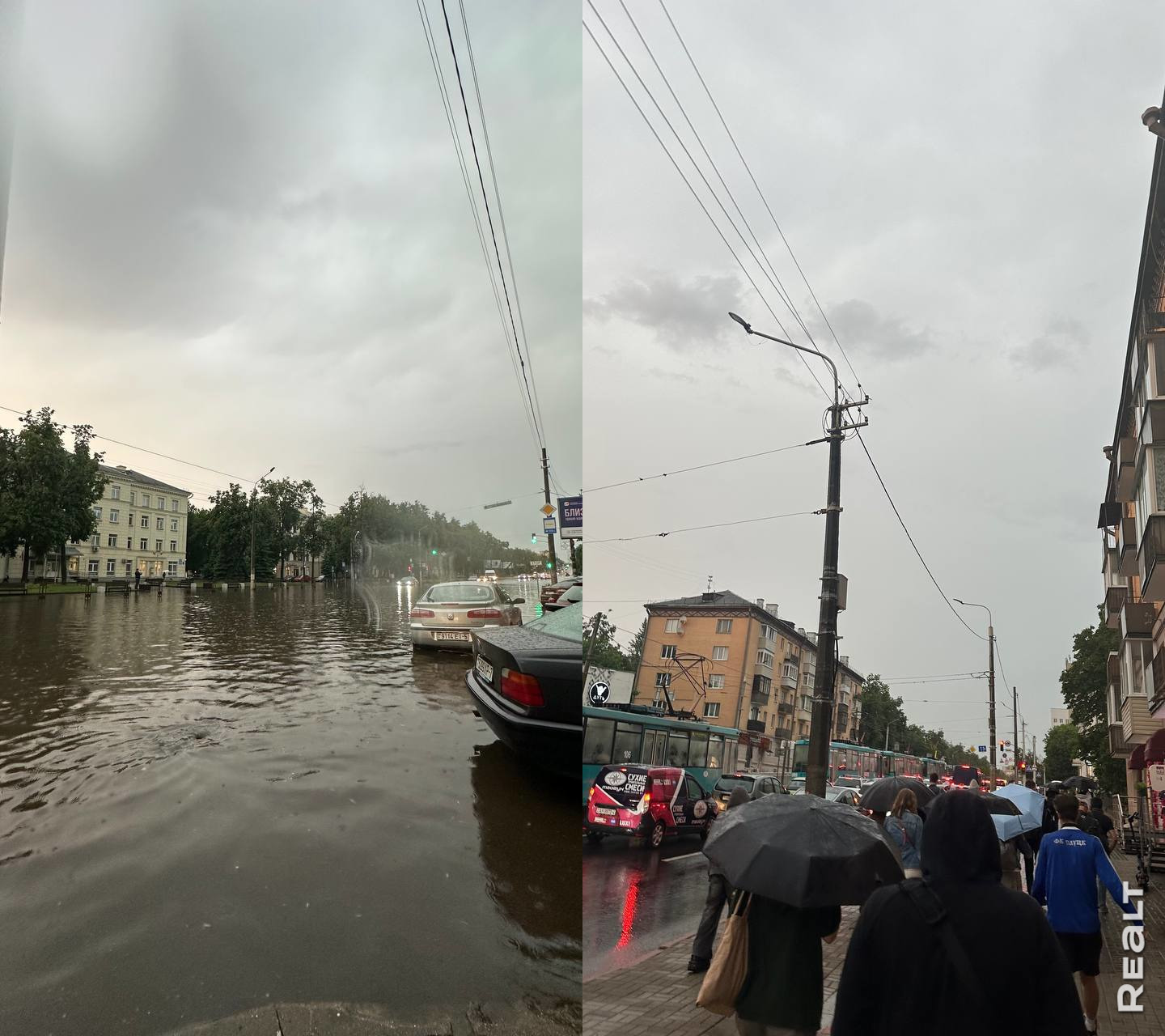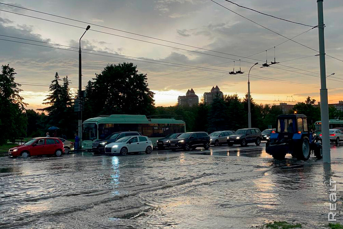Сегодня вечером в Минске вовсю лил дождь и гремела гроза. Серьезный ливень прошел и в других городах Беларуси. Хоть дождь и не длился долго, а был всего около получаса, за это время улицы успело серьезно залить. Вот, как это выглядело.