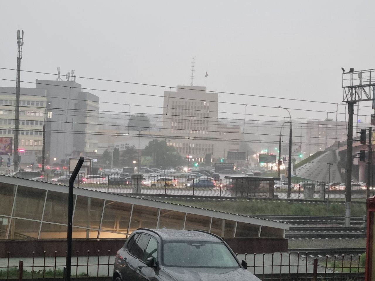 Ливень был буквально во всех районах Минска. Такая ситуация на улице Воронянского в районе Института культуры была на самом старте, когда дождь только начинался.