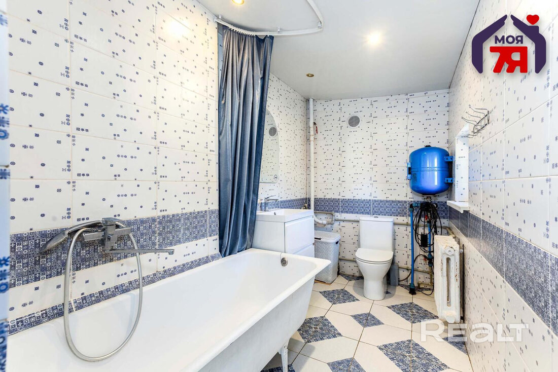 Здесь продается одноуровневый блочный дом 2020 года постройки. Общая площадь — 91,5 м2. Планировка такая: кухня, гостиная, две спальни, два санузла, топочная и тамбур.