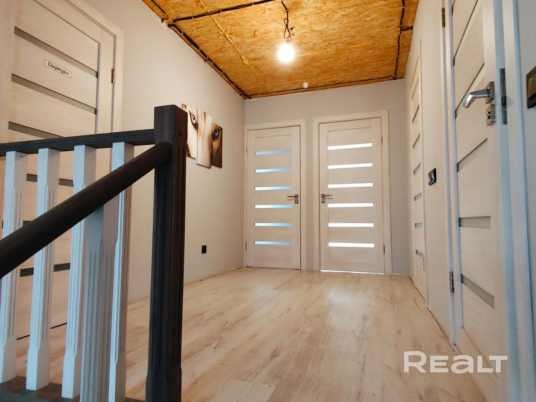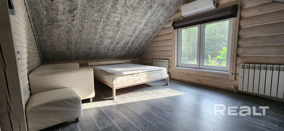 Дом деревянный, с мансардным этажом. Под ним — обитаемый бетонный цоколь. Общая площадь — 134 м2.