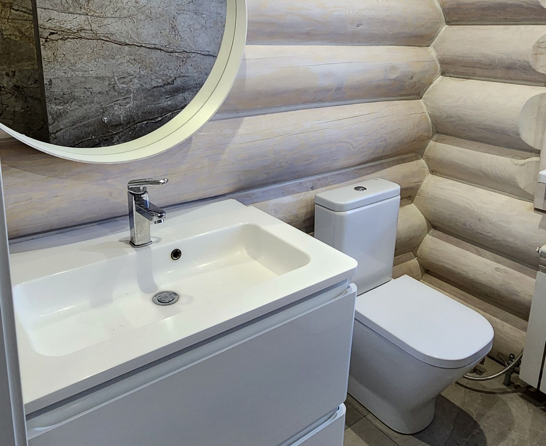 Дом после большой реконструкции: усилен фундамент, утеплён, с новой крышей и окнами. Внутри деревянные стены обшиты водостойким гипсокартоном, залита стяжка пола. Печь реконструирована. Также были начаты работы по обустройству дополнительной комнаты на втором этаже.