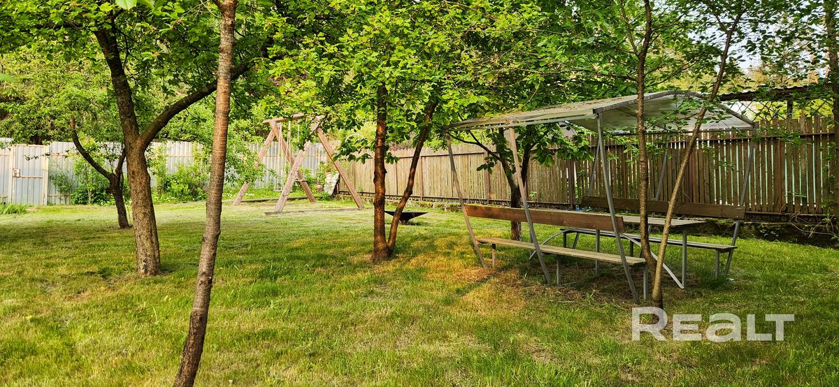 Участок 15 соток ухожен, с оборудованной детской площадкой. Забора нет.