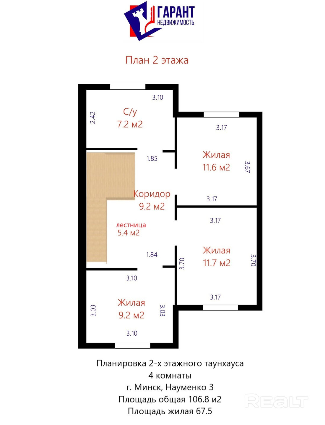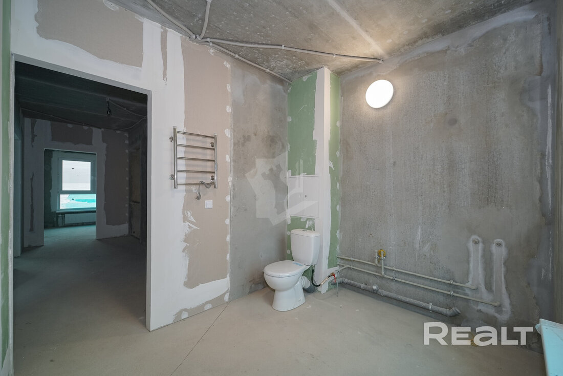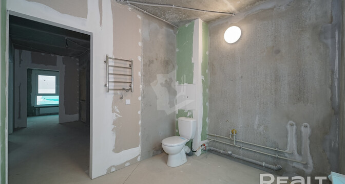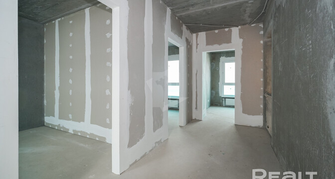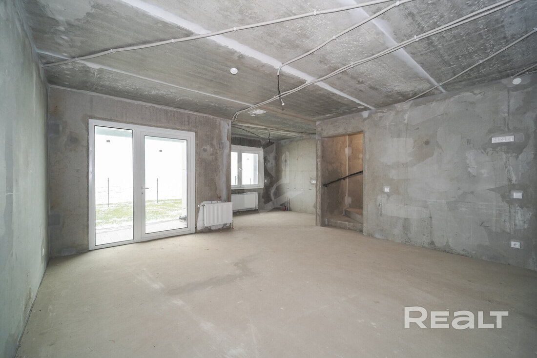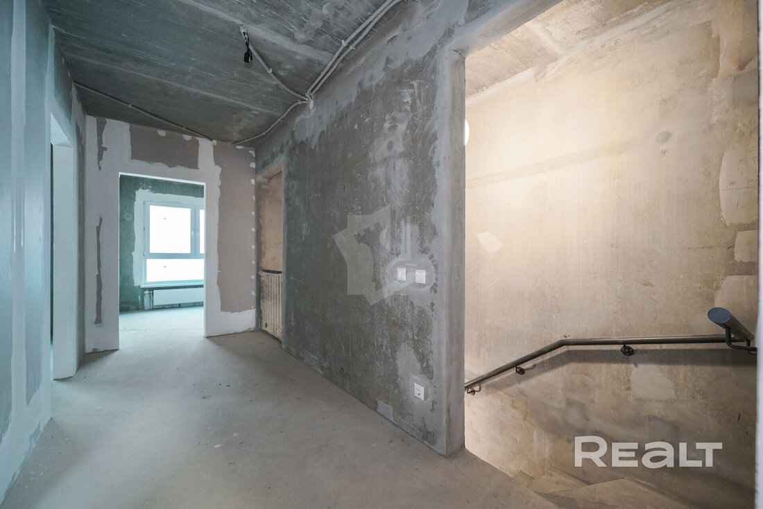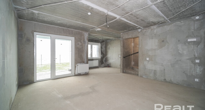 Эта четырехкомнатная квартира находится на улице Ивана Науменко, 3. Площадь двухэтажной квартиры в блокированном доме составляет 108 квадратных метров. Жилье предлагается без отделки.