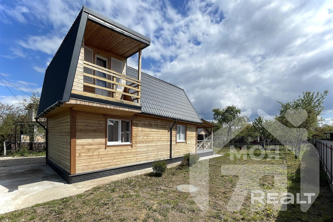 Деревянный дачный дом построили в 1985 году, но недавно его полностью обновили (тут появились новые фасады, стеклопакеты, металлочерепица). Общая площадь дома насчитывает около 100 квадратных метров, благодаря этому тут каждый найдет местечко для отдыха и уединения.