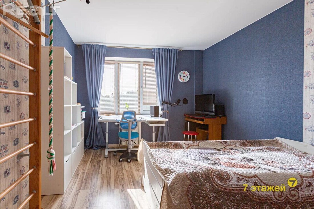 Квартира для большой семьи на 4 комнаты только одна и стоит 119 900 долларов. Находится на 3 этаже панельного дома, общая площадь 100,9 м2. Все жилые комнаты изолированные, на полах плитка и ламинат. Ремонт свежий, современный.