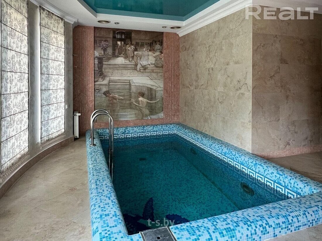 Общая площадь — 472 м2. Рядом с домом построен летний дом с размещением в нем большого бассейна и сауны. Земельный участок 25 соток, благоустроен и огорожен.