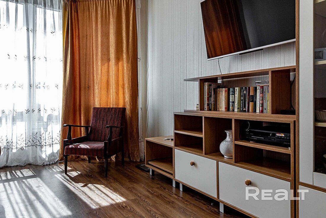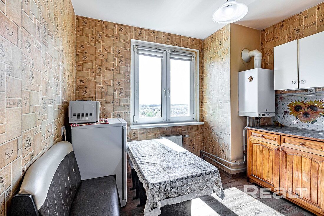 Планировка удобная: спальня 14 м2, кухня 8,3 м2, лоджия, раздельный санузел, кладовка. Особенность: автономная индивидуальная система отопления и горячей воды (стоит на кухне газовый котел Bosch). Ремонт бюджетный, но не «убитый».