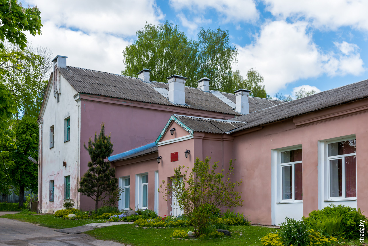 На улице Школьной продается строение 1870 года постройки. Изначально в здании располагался заезжий дом, который стоял у большой почтовой дороги, котрую еще называли Екатерининским шляхом. Здесь находилась первая после Минска почтовая станция. Заезжий дом затем стал частью имения Чапских.