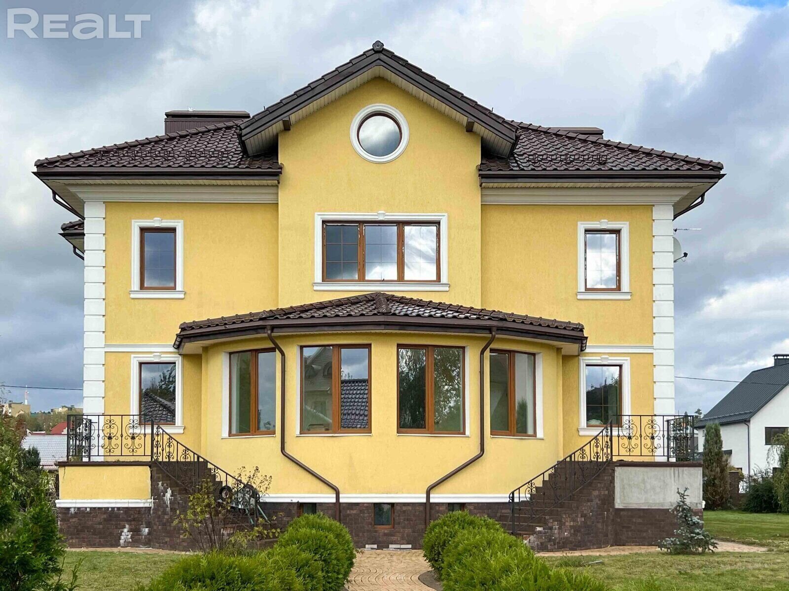 Кирпичный двухэтажный дом с цокольным этажом и черепичной крышей стоит 360 000 долларов.