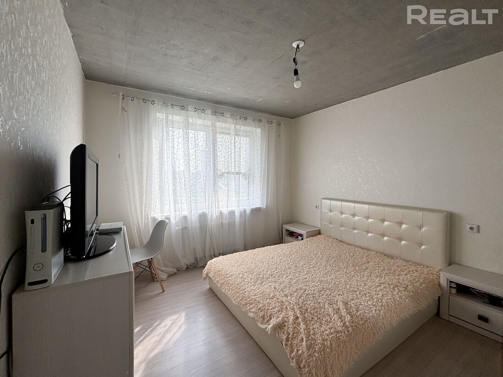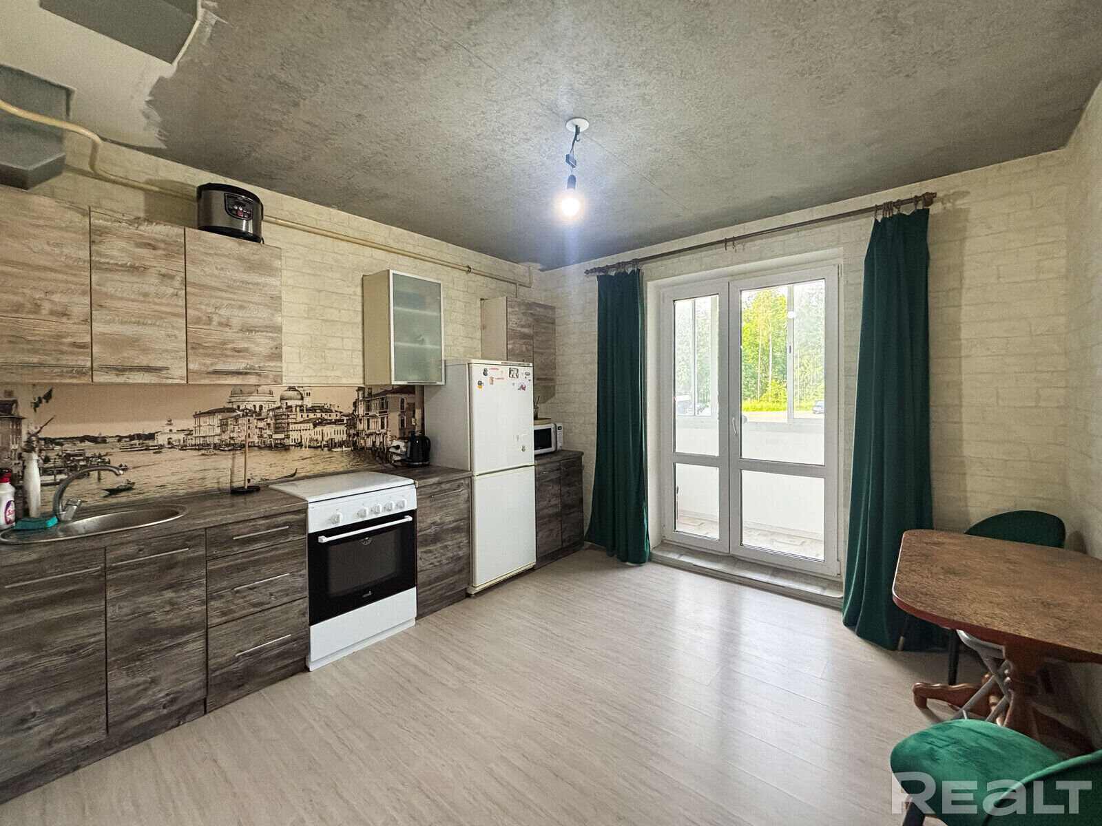 Она, правда, с небольшими недоделками в виде черновых потолков, но вполне жилая.