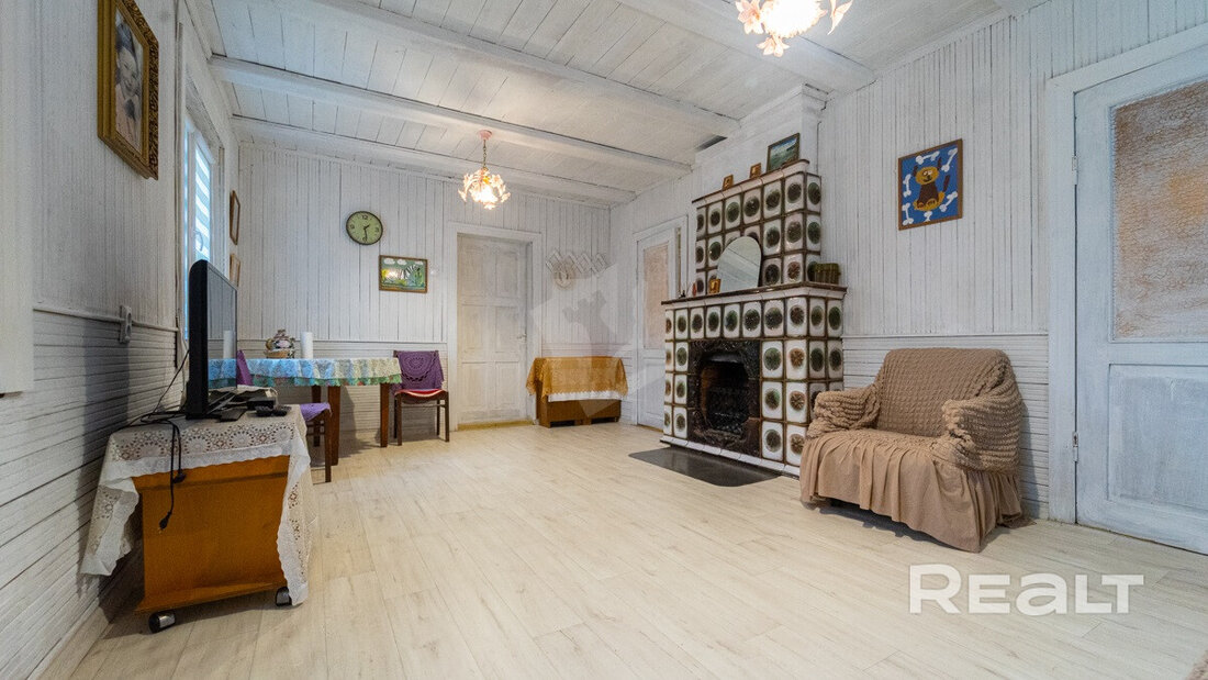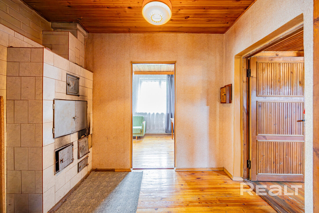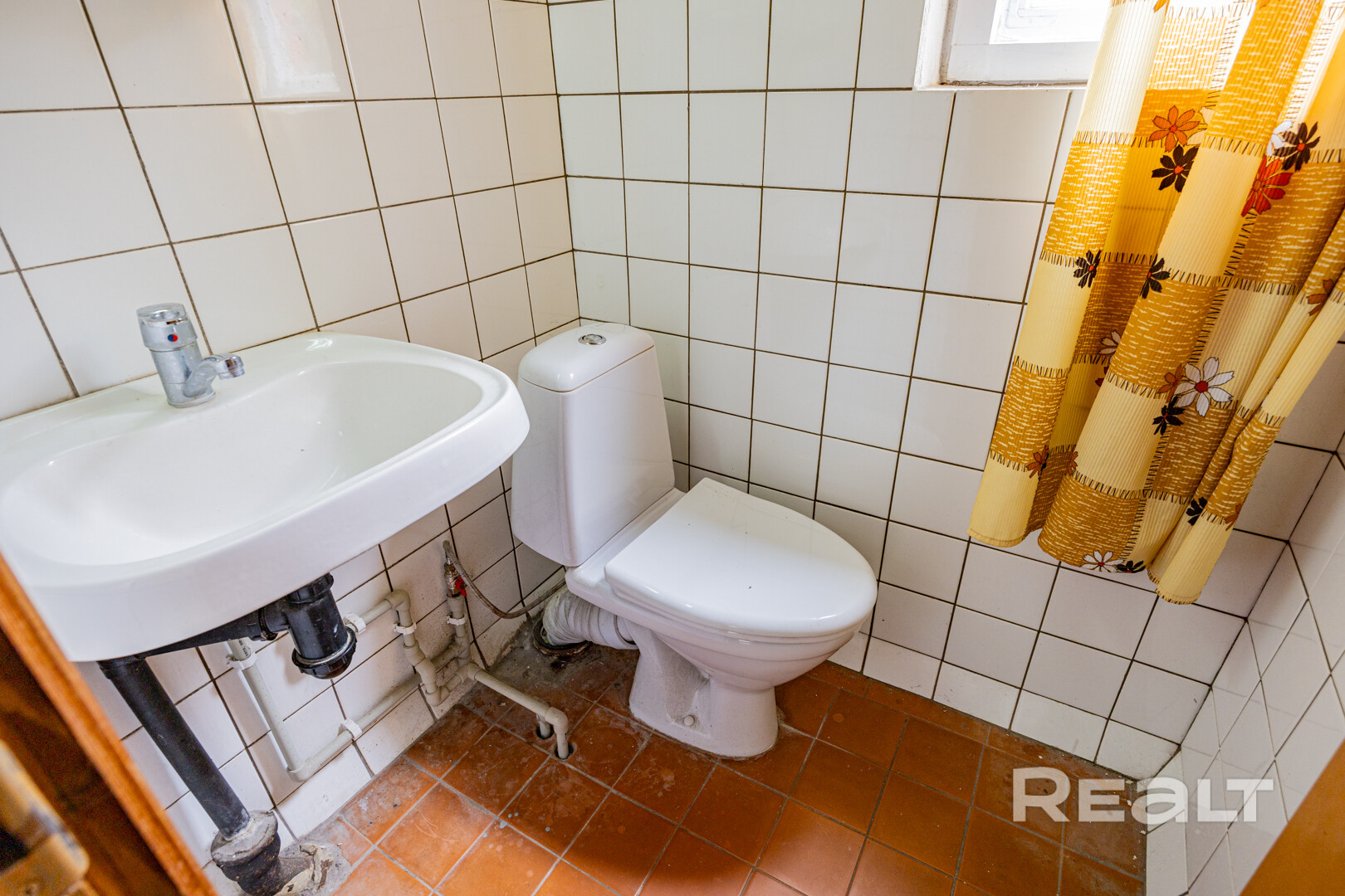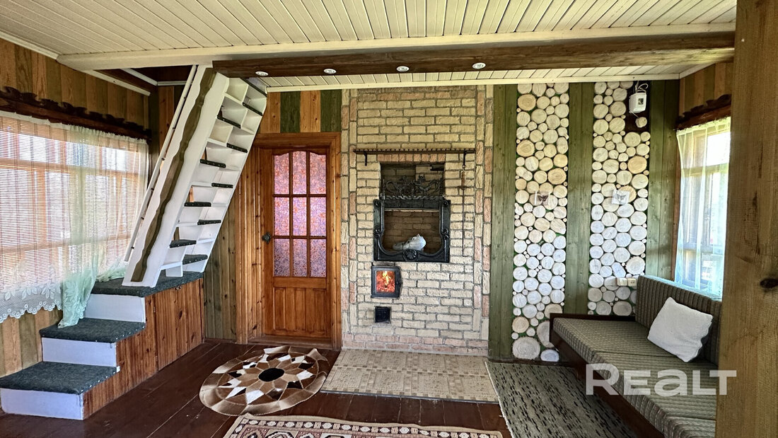 На первом этаже расположены кухня большая общая комната с печью, санузел.