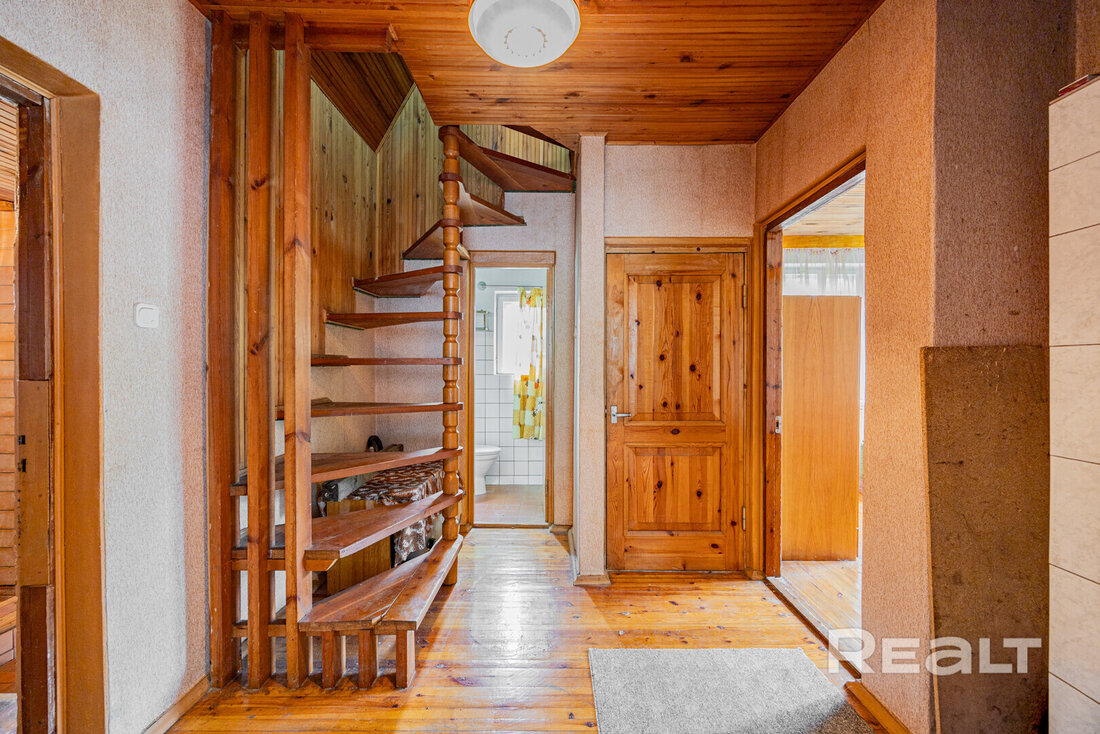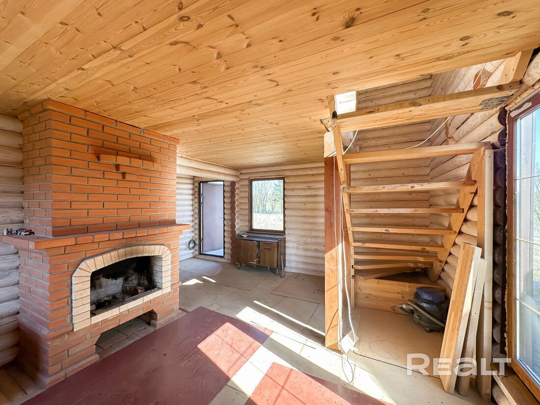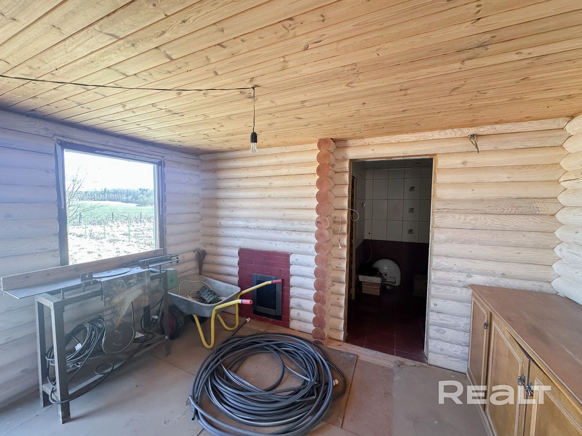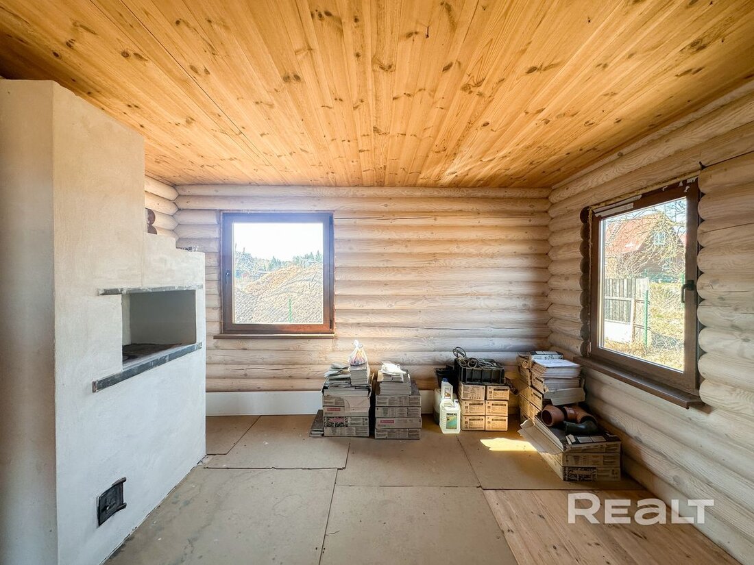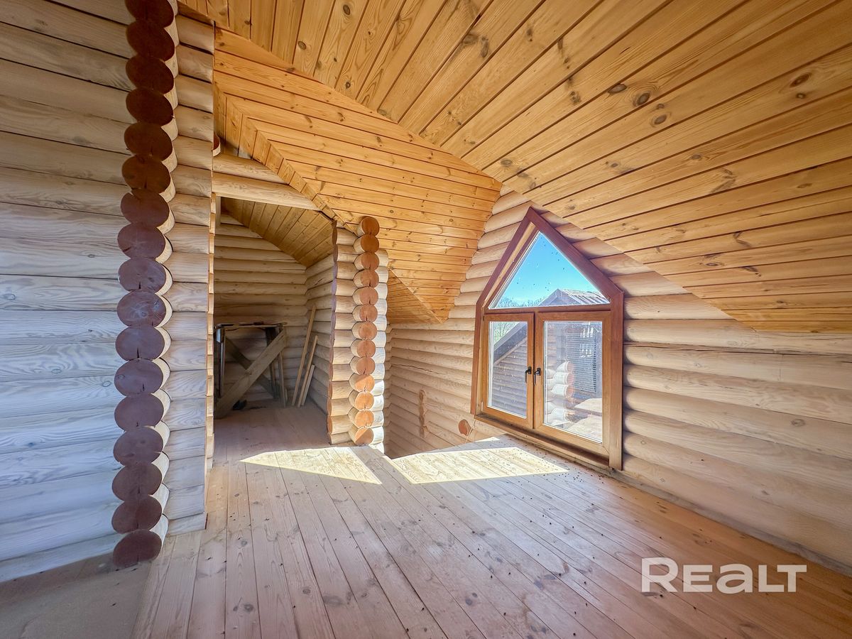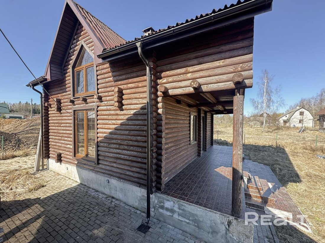 Первая совсем новая, из оцилиндрованного бруса. Дом двухуровневый, общей площадью 97 квадратов. Внутри отделочные работы практически закончены.