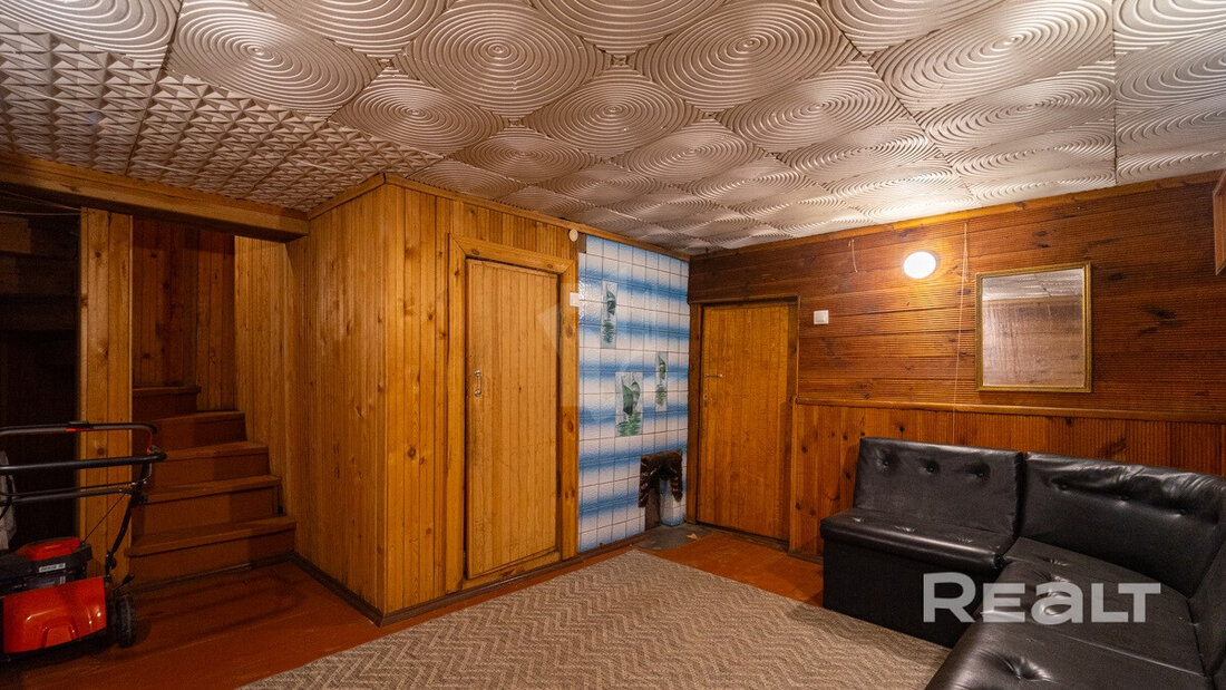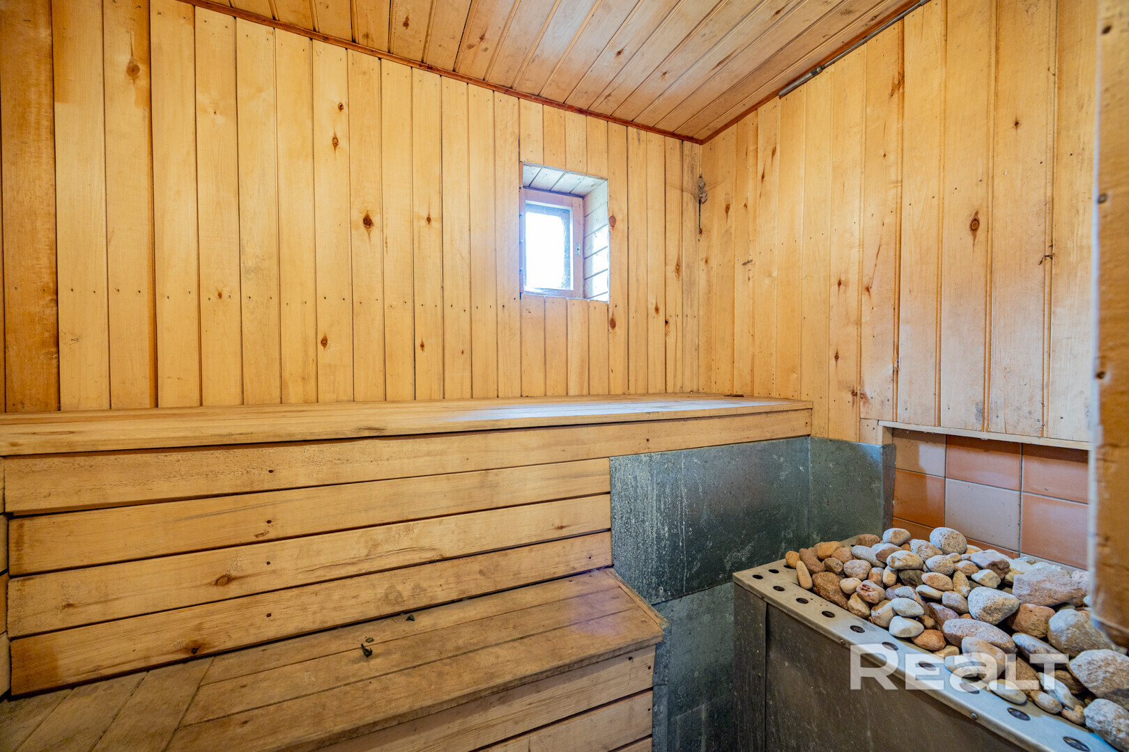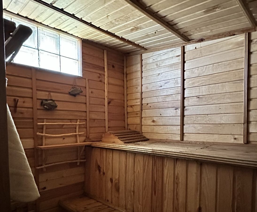 Под домом — теплый цоколь с баней, душем, бойлером. Есть подвал и гараж с помещениями для хранения.