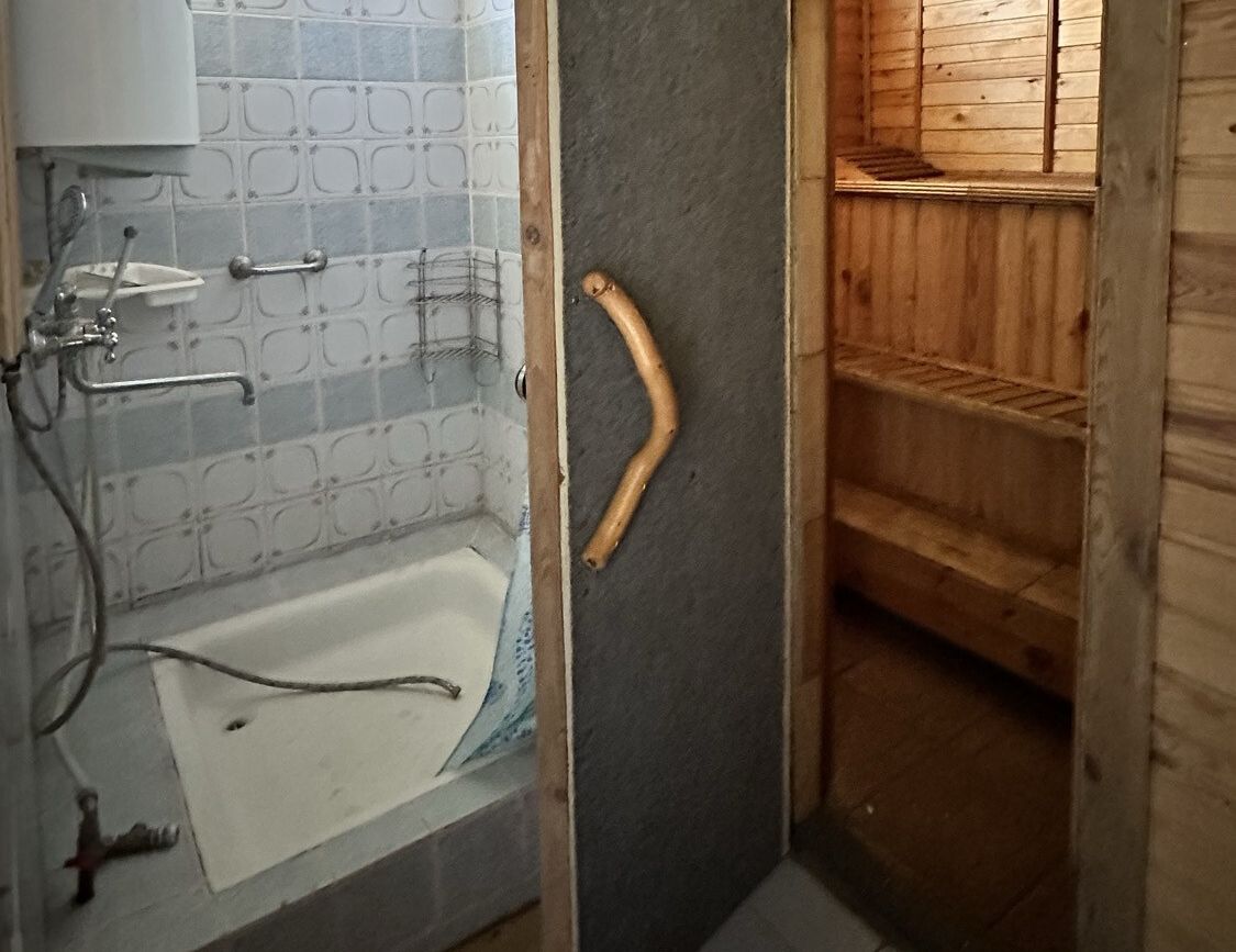 Второй дом каркасный, утепленный, общая площадь 60 квадратов. В нем три жилые комнаты, прихожая, кухня, санузел с душевой и сауна с дровяной печью.