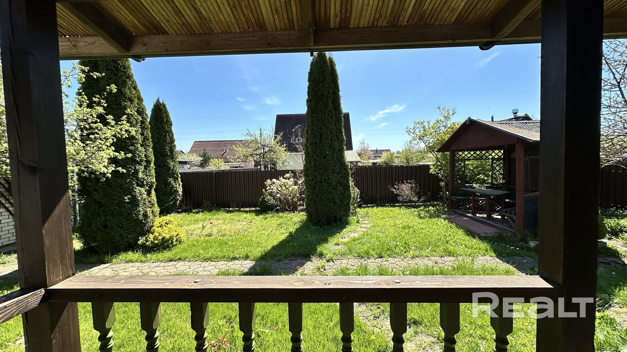 Участок 8,4 сотки, огорожен забором из металлопрофиля. На нем расположена беседка, дровник, мангал и площадка для парковки двух авто. Много плодовых деревьев и кустарников.