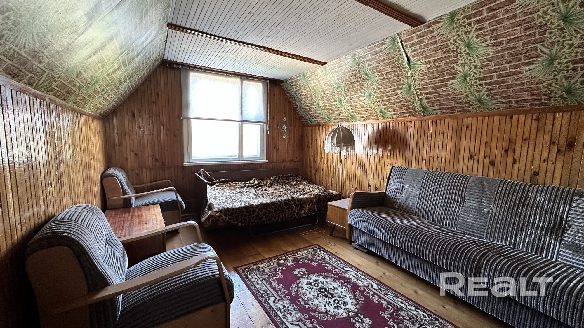 На мансарде – большая спальня. Дача продается с мебелью и бытовой техникой.