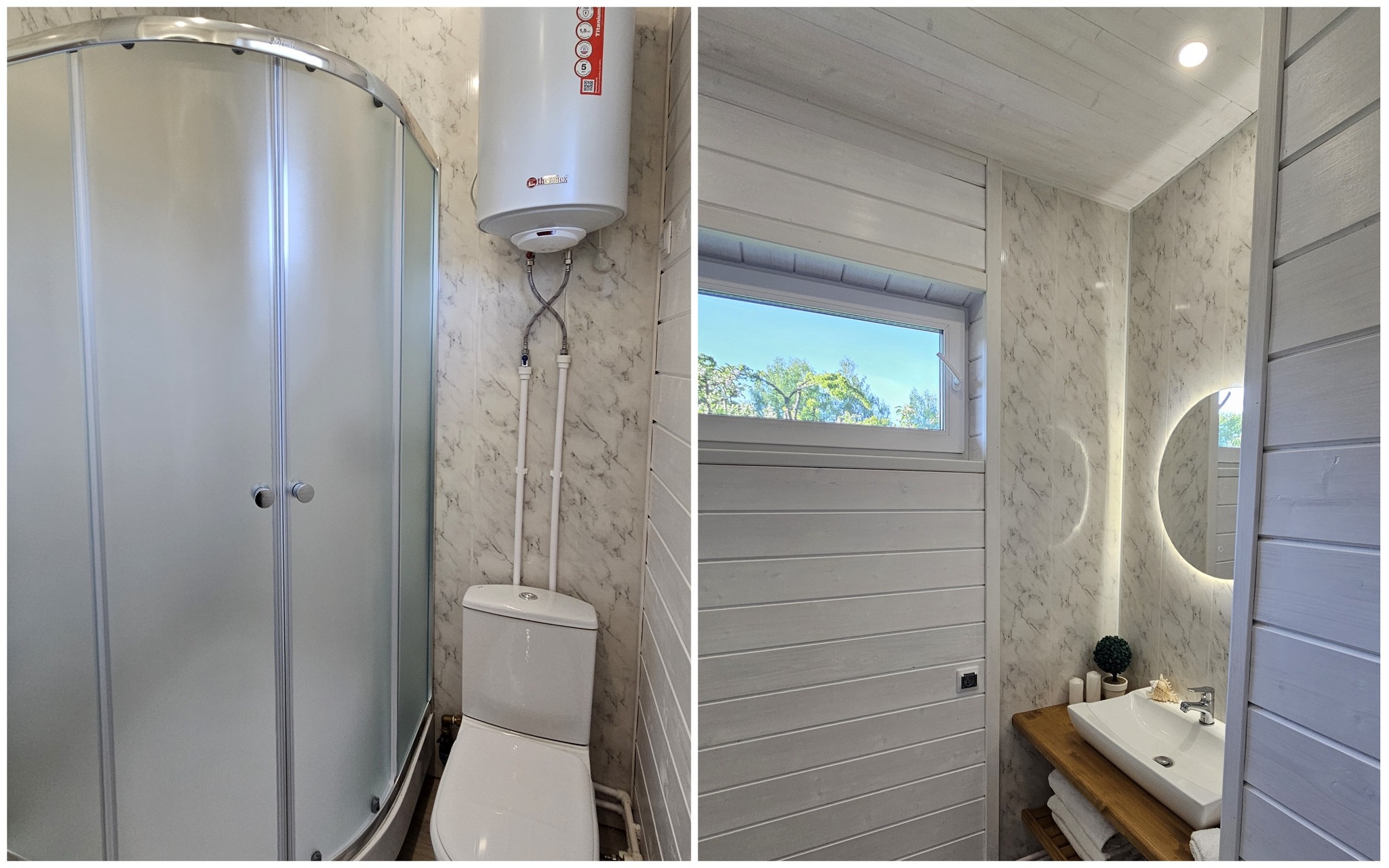 Обустроен и совмещенный санузел с душевой кабиной и бойлером. Канализация — местная (септик), отапливается дом с помощью печки.