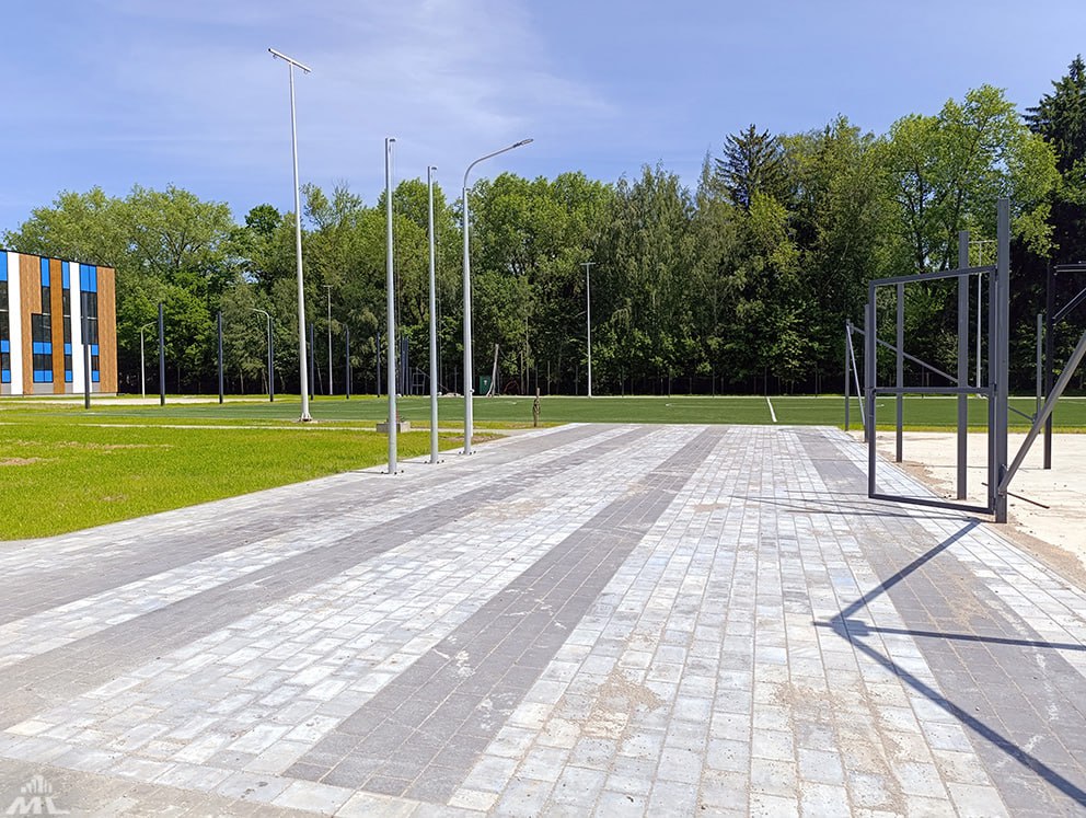 Готовы и открытые зоны: обустроен стадион (40×60 м) с искусственным газоном и спортплощадки, на футбольном поле нанесена разметка. Эту часть осталось оградить и установить оборудование.