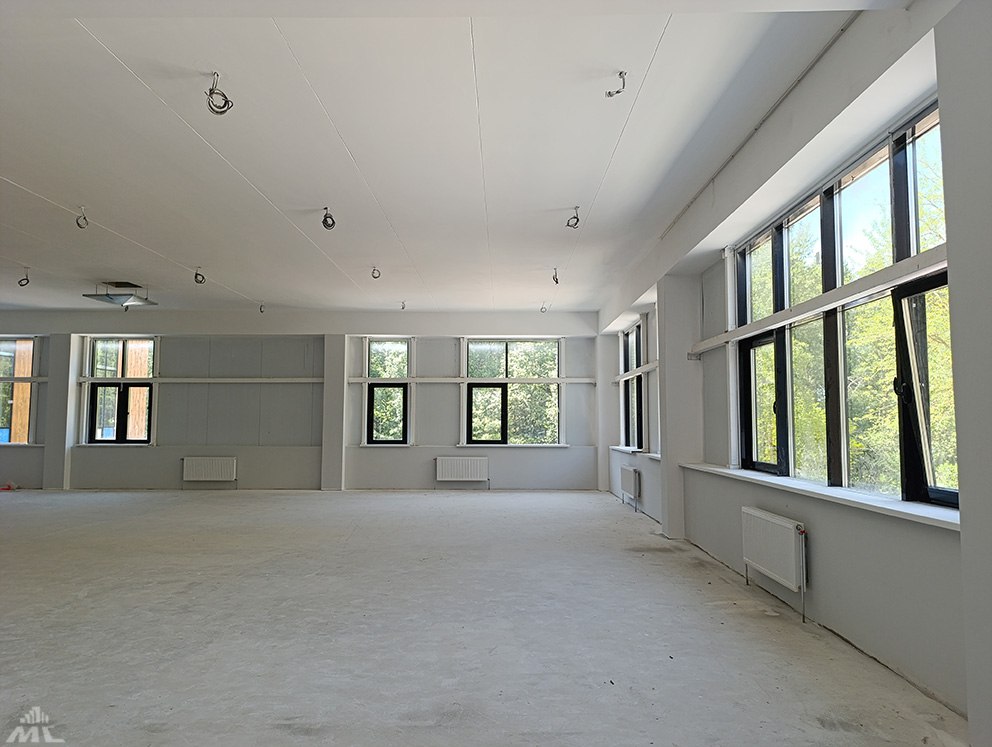 Основные работы сейчас ведутся внутри здания: отделочники красят спортзалы, облицовывают плиткой душевые, раздевалки и санузлы, готовят лестничные марши и вестибюль.