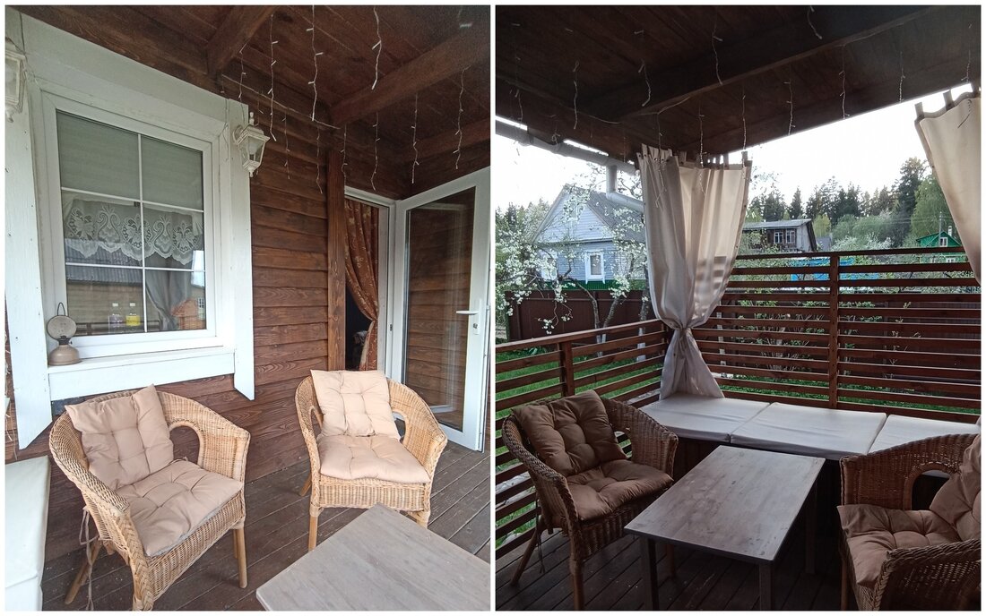 Продается дача в СТ «Ботаника», что находится почти на границе МКАД-2. Дом 1988 года постройки, но выглядит аккуратным. Фасад утеплили каменной ватой и обшили доской, заменили электрику. На крыше тут лежит шифер. Два этажа занимают 58 квадратных метров.