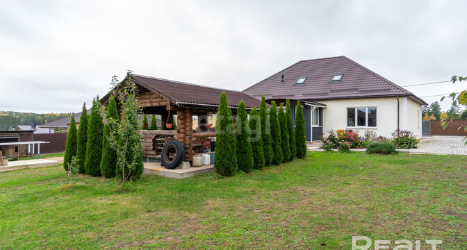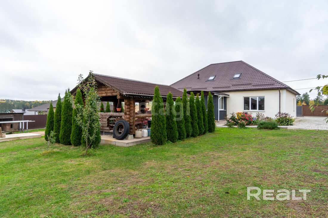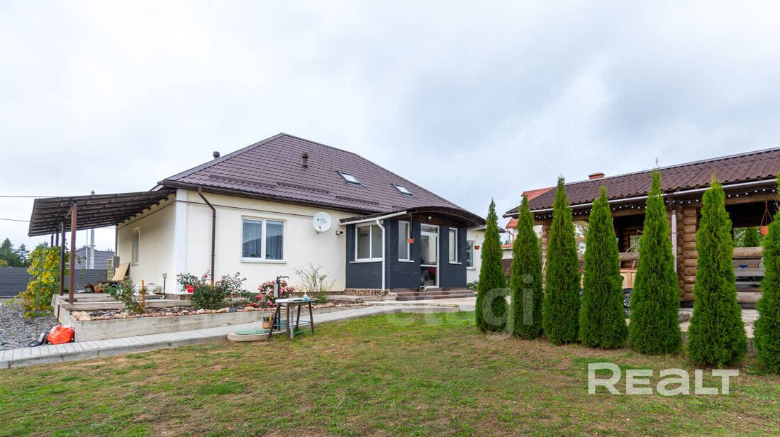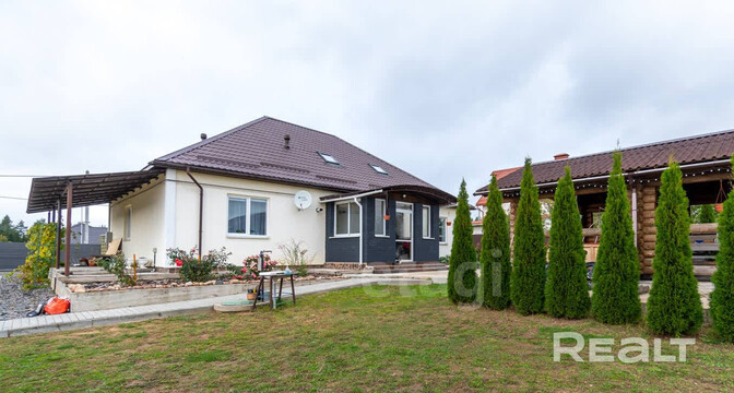 Общая площадь 124,5 м2. В нем три жилые комнаты, столовая-кухня и гостиная. Участок 18 соток, огорожен, благоустроен, имеются баня и беседка.