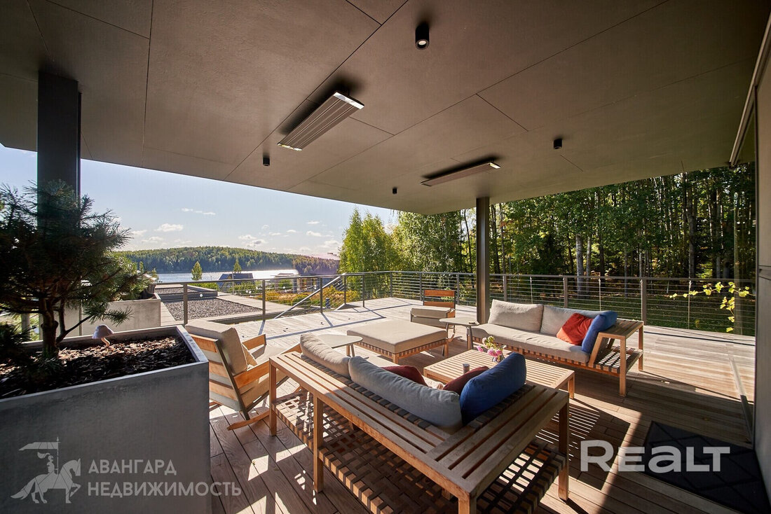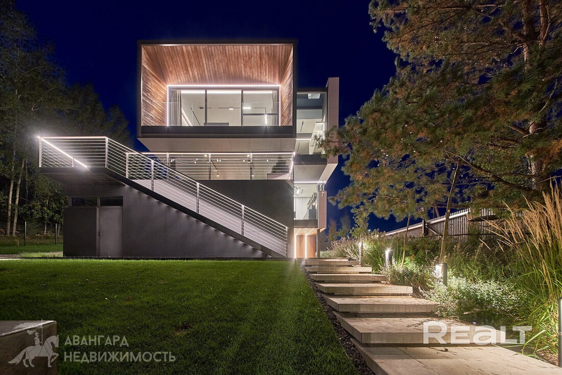 Объект находится на участке со сложным рельефом, граничит с лесом и окнами выходит на озеро.