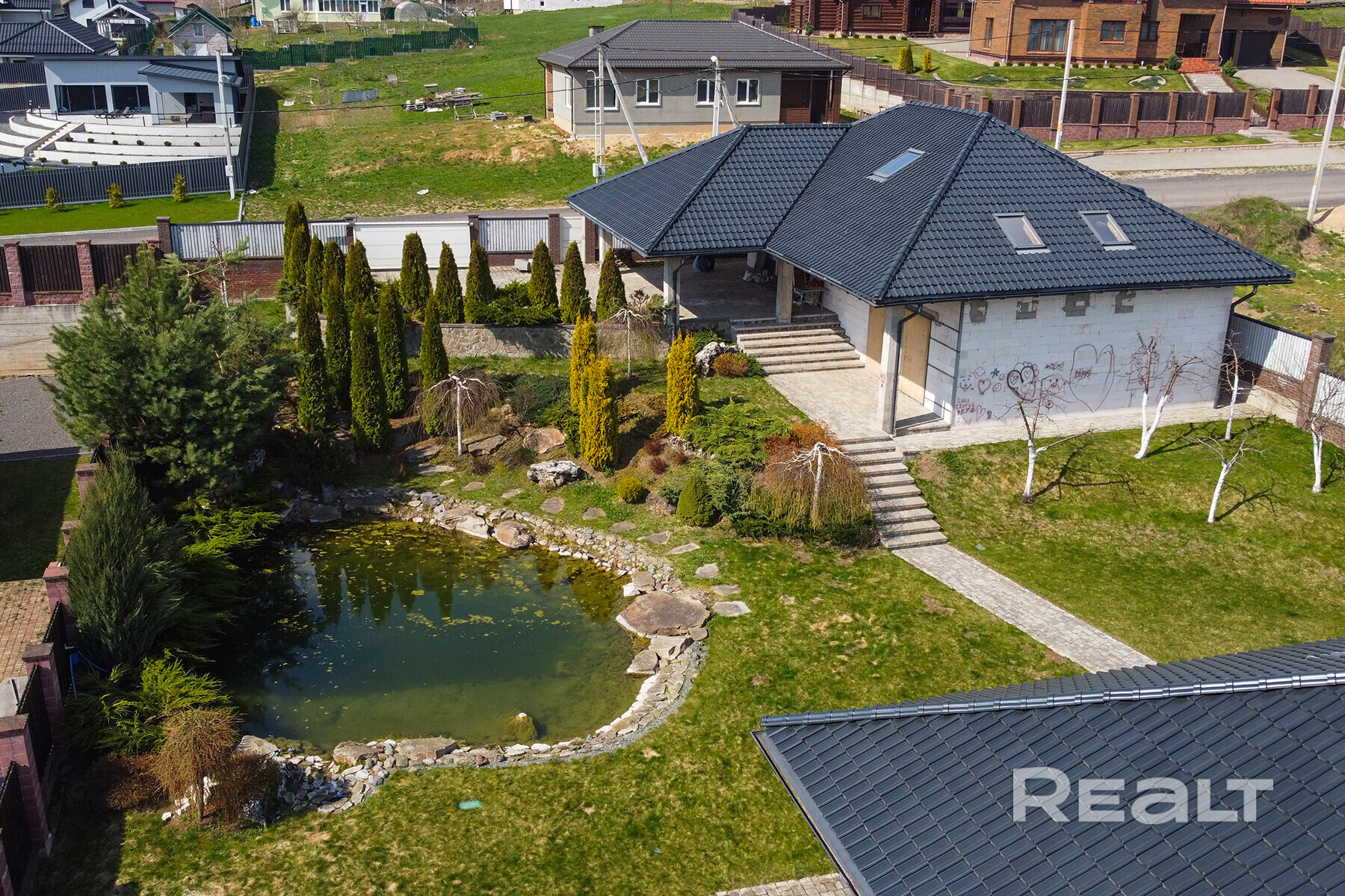 Участок 14,8 сотки, огорожен, с ландшафтным дизайном, прудом с фильтрацией, газоном с автополивом. Имеется недостроенный дом.