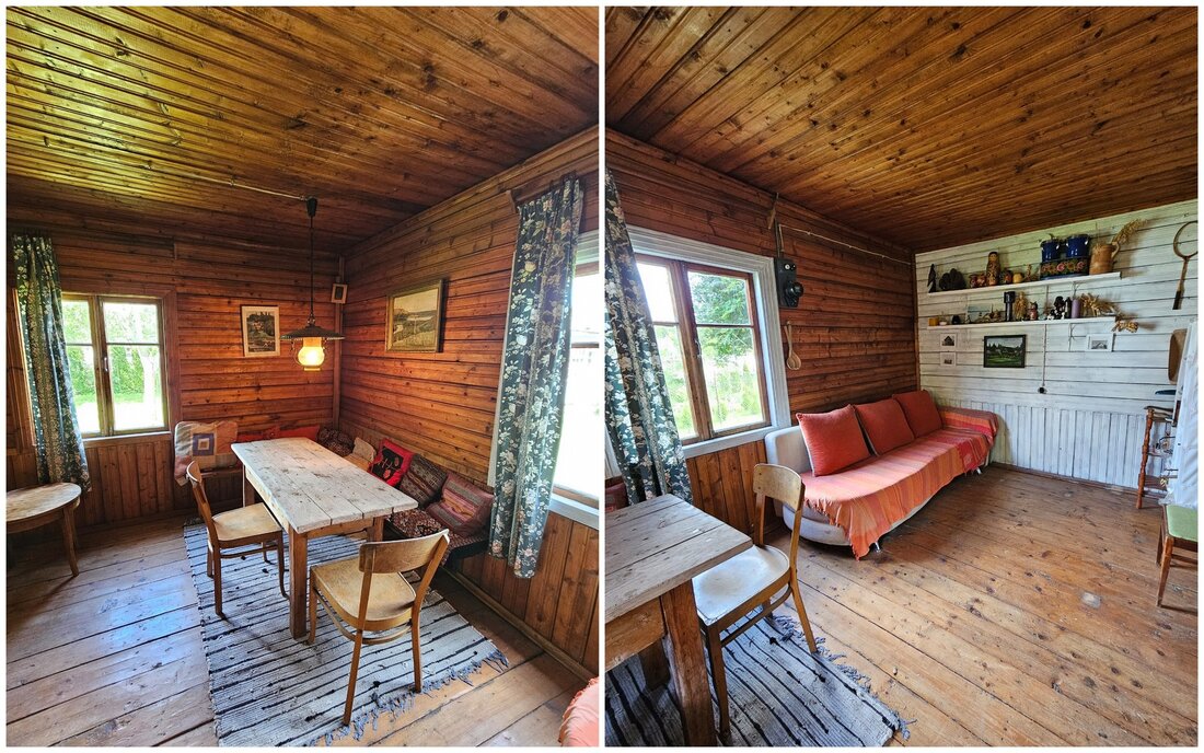 В доме обустроена летняя кухня. Спрятаться от жары можно в гостиной с двумя окнами.