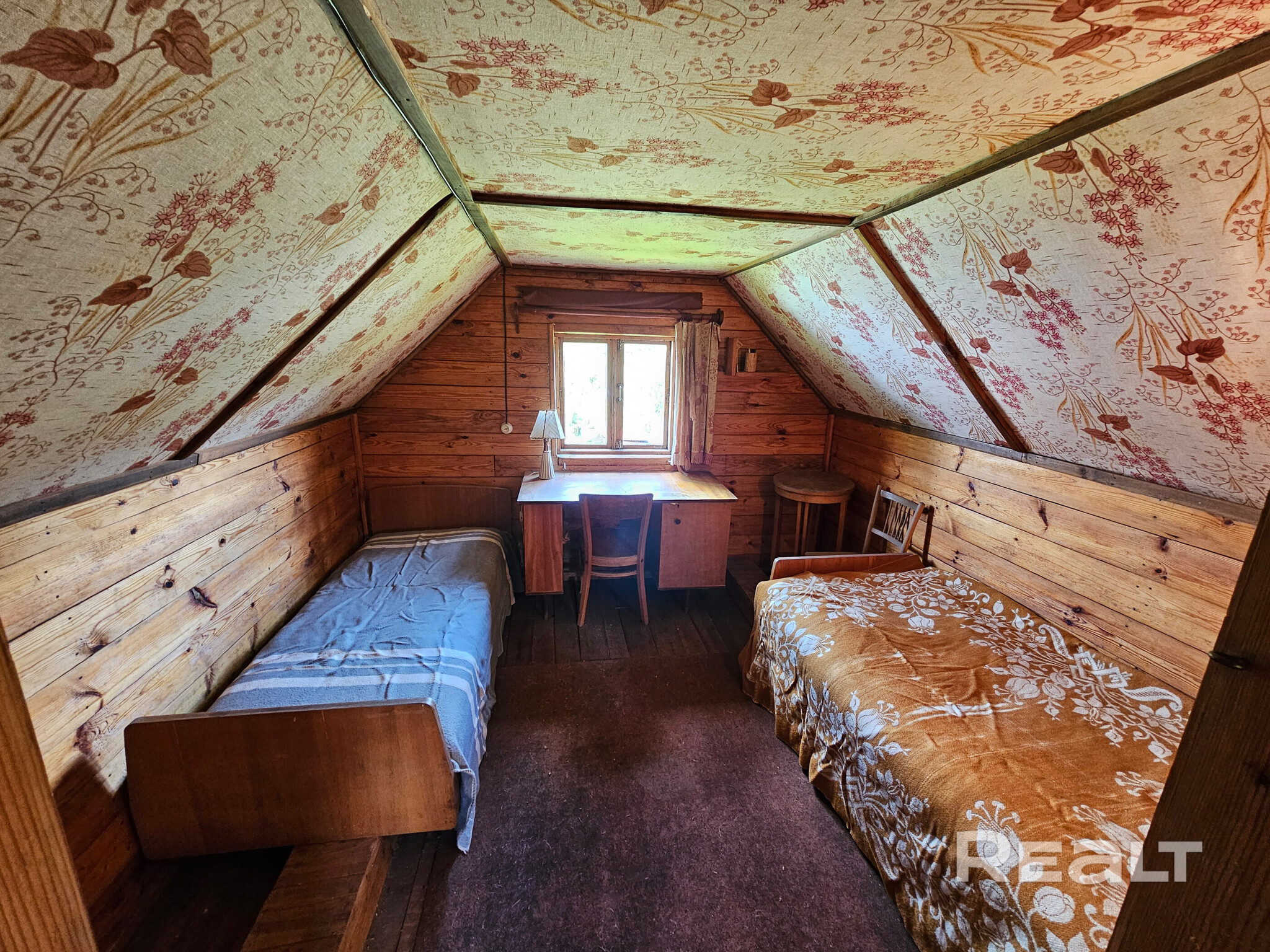 Дача располагается в СТ «Зорька». Двухэтажный дом возвели еще в 1960-х. Внутри он отделан деревом и обставлен мебелью. Площадь жилья составляет 39,7 м².