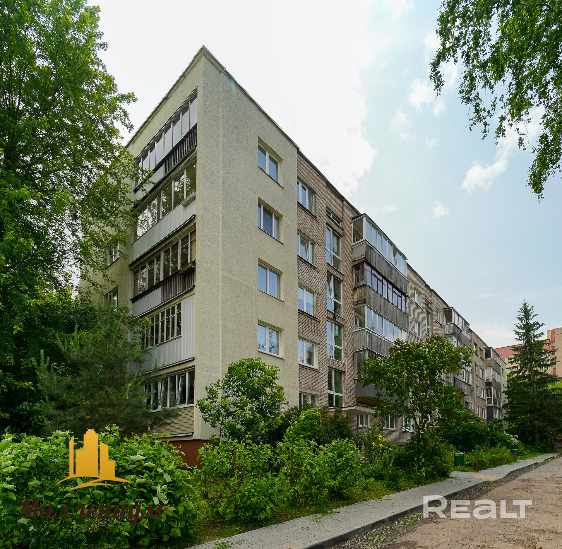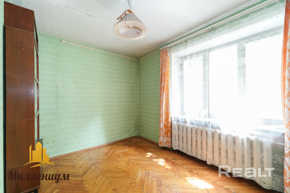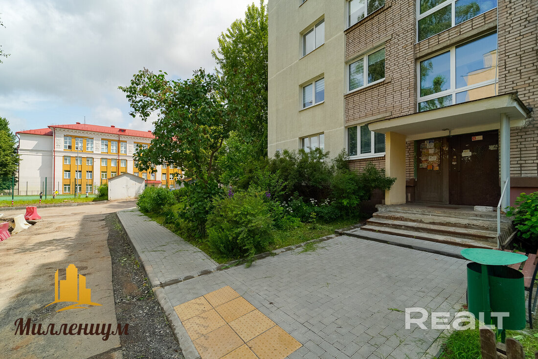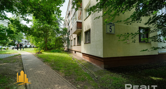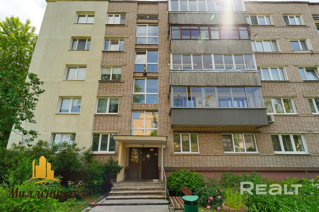 Это пятиэтажный кирпичный дом 1972 года постройки на Мельникайте, 5. Локация отличная — до станции метро «Фрунзенская» буквально 300 метров, до ТРЦ «Галерея» — меньше 600 метров, до Немиги и Свислочи — чуть больше километра.