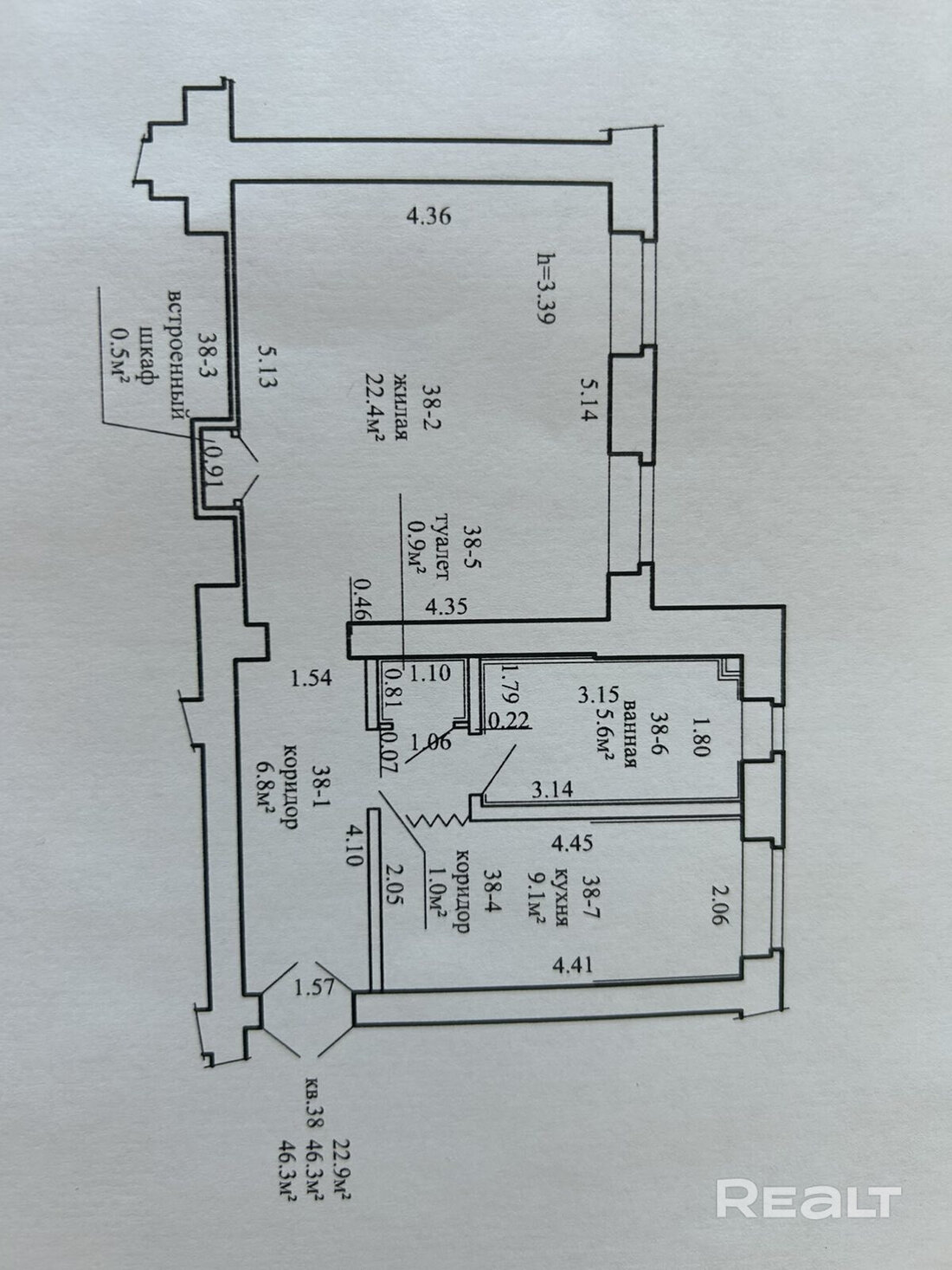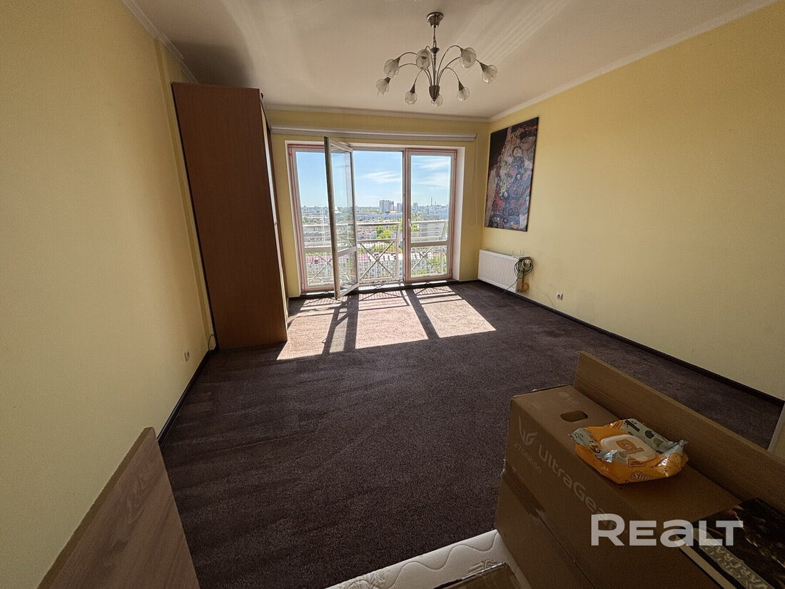 Квартира находится на 17-м этаже 20-этажного каркасно-блочного дома. Общая площадь — 39 квадратов, жилая — 22 метра, кухня — 9 метров.