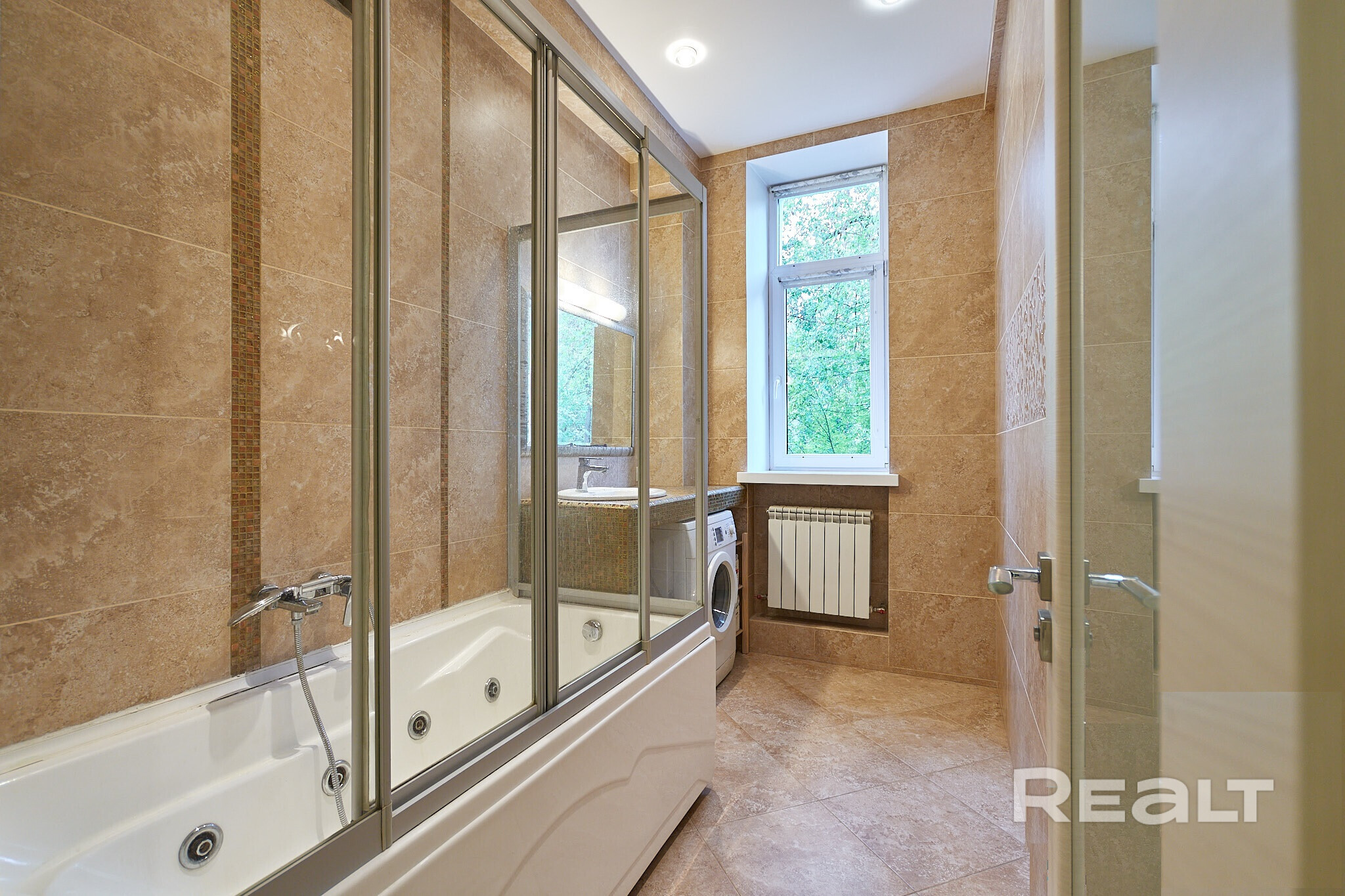 Санузел раздельный. В просторной ванной комнате есть окно, установлена ванна и подключена стиральная машина.