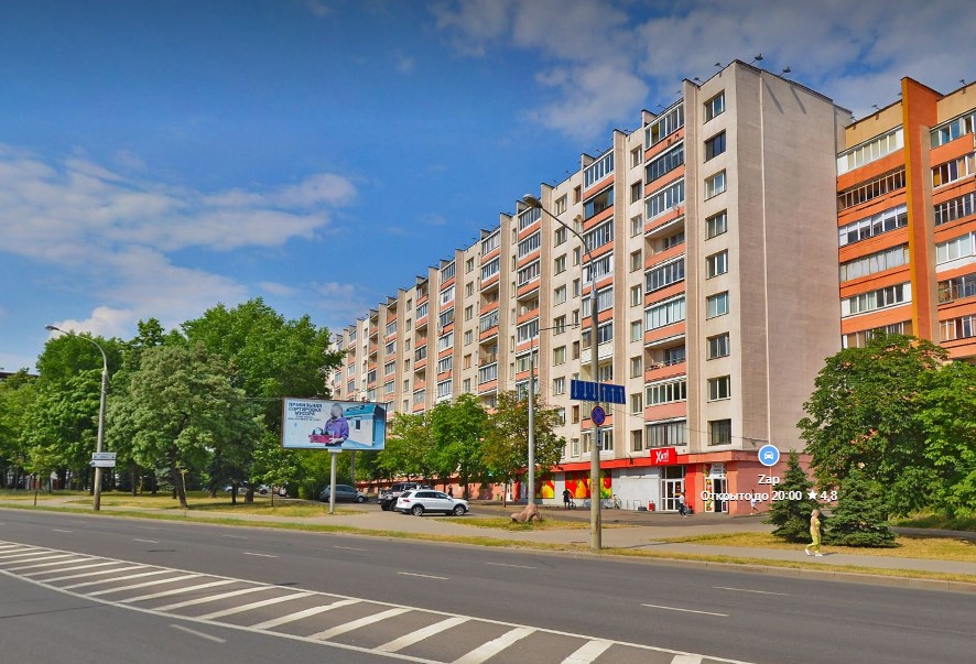 Этот дом находится на Червякова, 4. Это — район Сторожевки, почти центр города, откуда пешком можно дойти до Троицкого предместья, Парка Победы и Немиги.