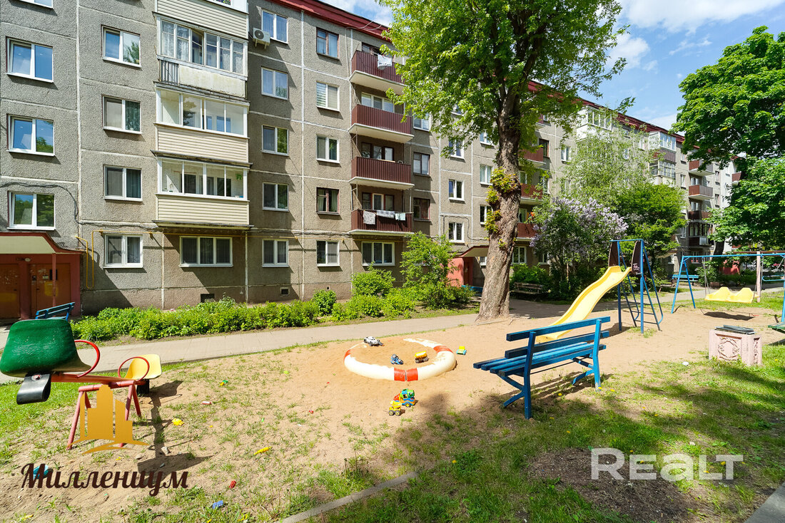 В районе есть магазины, аптеки, детские учреждения образования. Рядом с домом находится остановка общественного транспорта. До метро «Могилевская» две остановки.