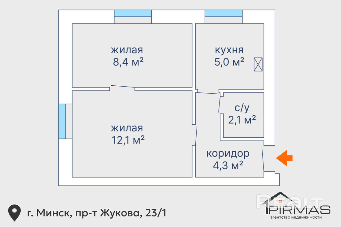 Санузел — раздельный. Выход на балкон — из комнаты.