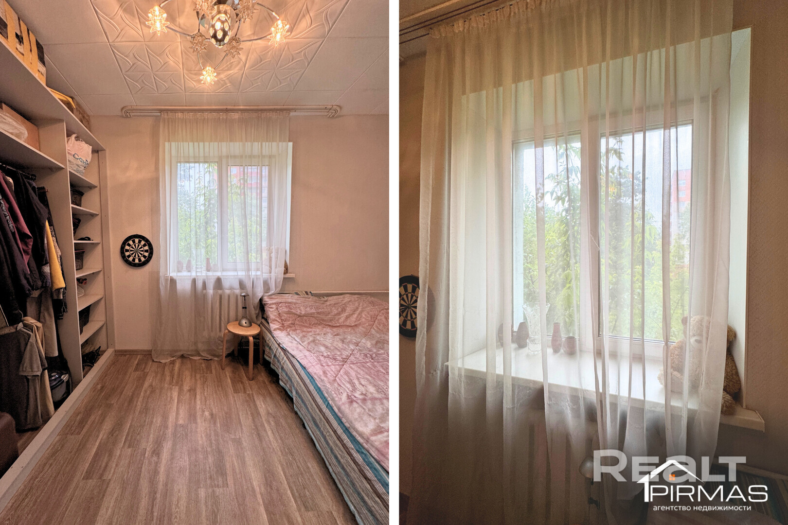 Здесь две изолированные комнаты. Окна выходят на обе стороны. Двушка нуждается в ремонте. Полы тут еще деревянные.