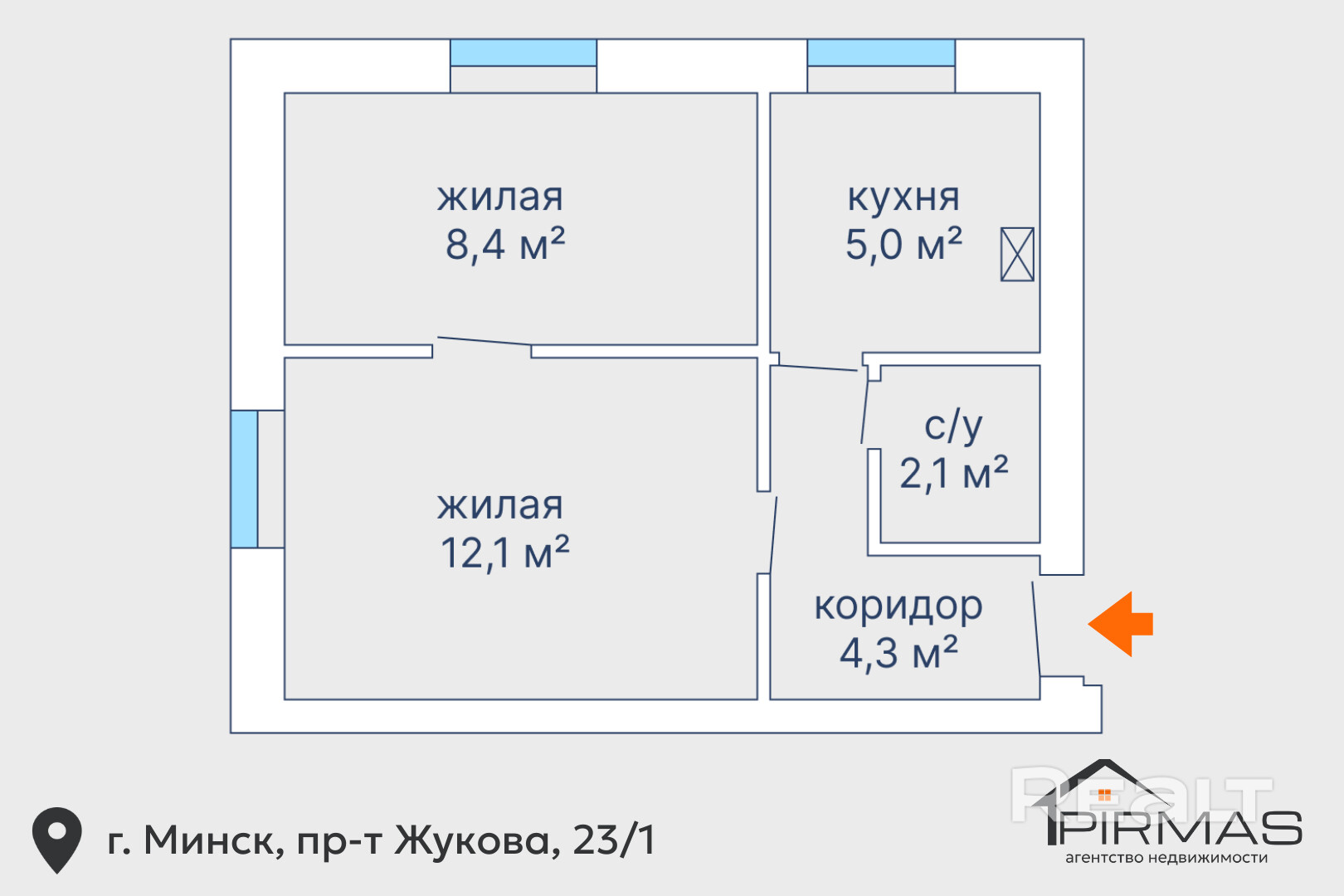 Продается квартира в двухэтажном доме 1959 года постройки на проспекте Жукова, 23/1. Она располагается на втором этаже и занимает 31,9 м². На кухню отведено 5 квадратных метров.