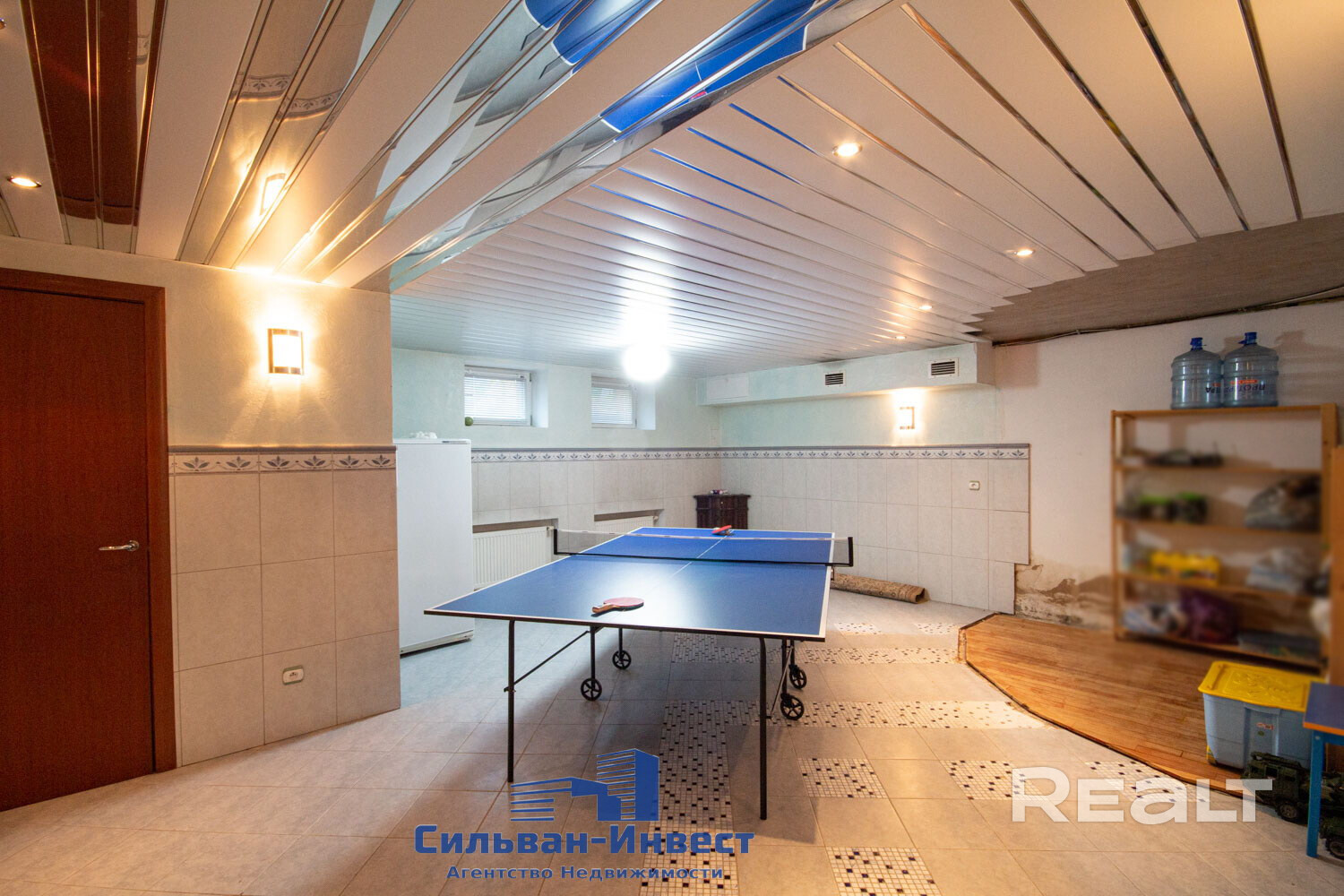Есть в доме и подвальное помещение, где размещены хозяйственные комнаты, котельная, а также оборудовано место под сауну и бассейн. А еще установлен теннисный стол.
