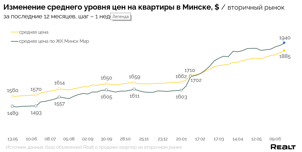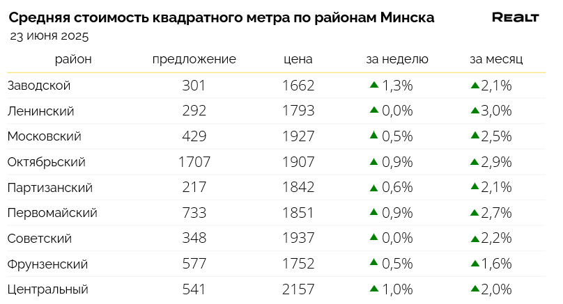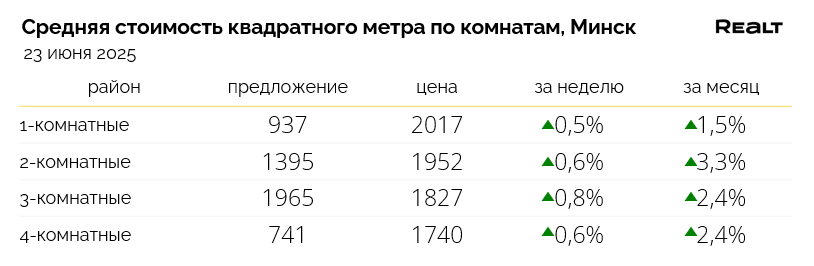 На объем предложения и индекс цен в Минске сильно влияет большое количество объявлений в базе Realt о продаже квартир в строящихся новостройках преимущественно Октябрьского, а также Центрального и Московского районов. Чтобы минимизировать их воздействие на показатели, описывающие вторичный рынок продажи квартир, все представленные ниже данные рассчитаны без учета квартир в строящихся домах.