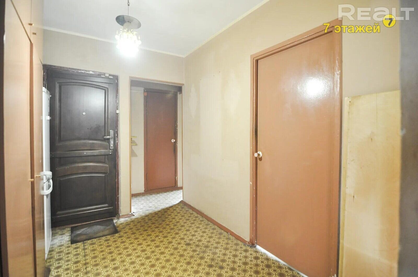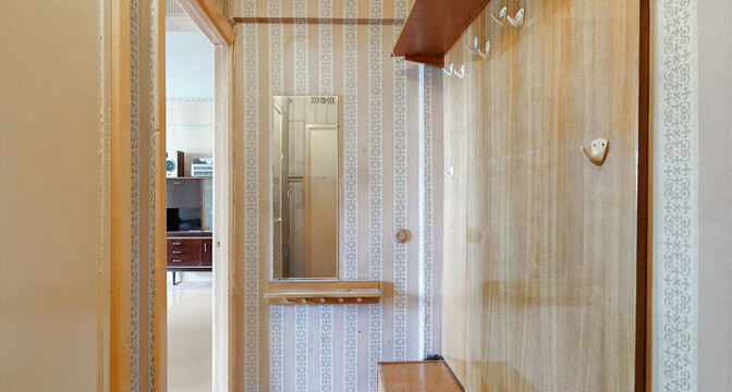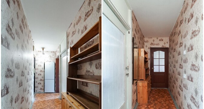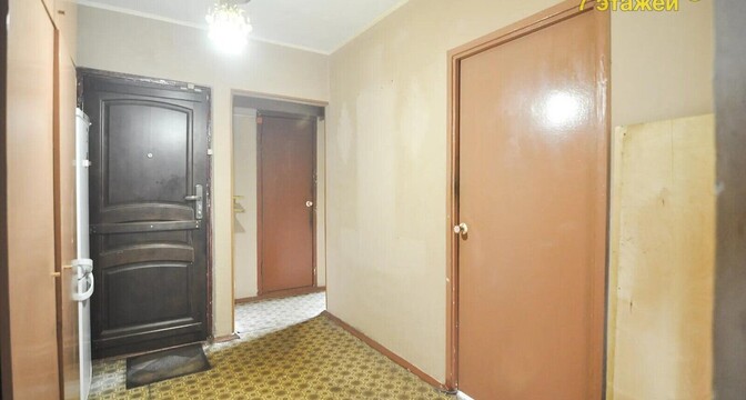 Квартира идет под ремонт. Тут все комнаты изолированные. Та, что имеет выход на застекленный балкон, находится на другой стороне. В коридоре продумано несколько ниш, что позволяет сделать просторную гардеробную или поставить шкаф.