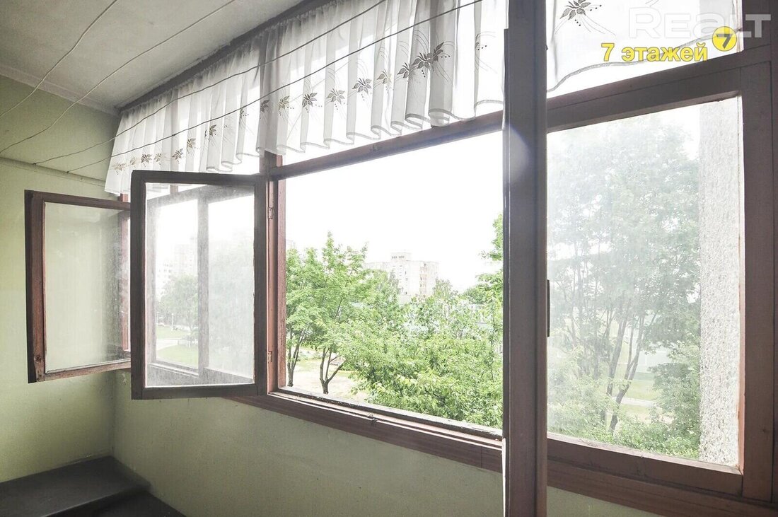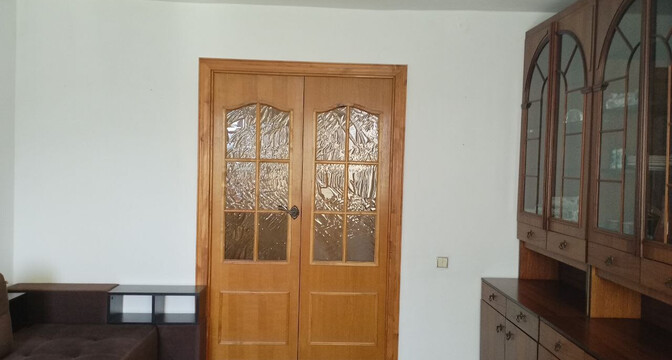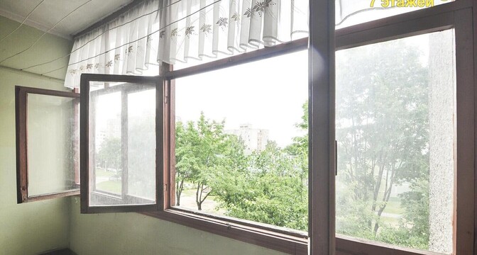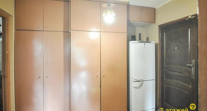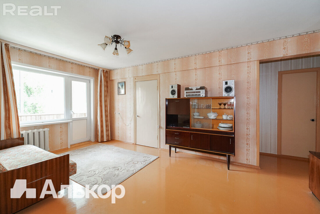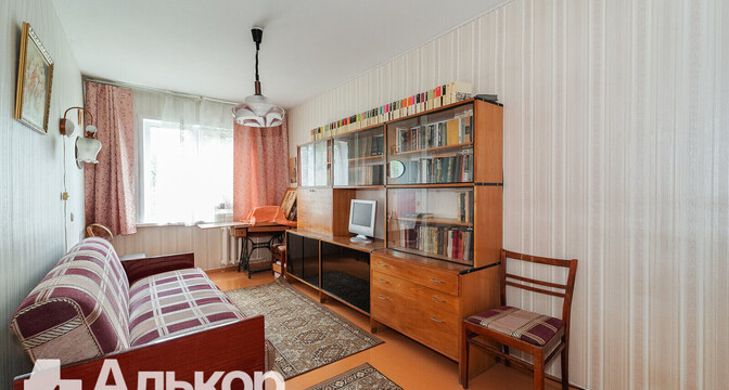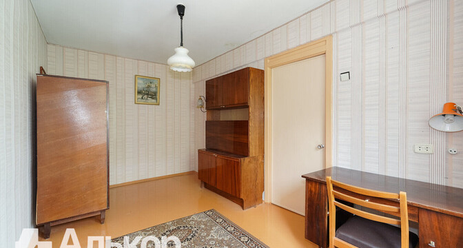 В доме есть одна проходная комната с выходом на застекленный балкон. В окнах здесь стоят деревянные стеклопакеты, на полу — дерево. Есть ниша под шкаф или гардеробную. За квартирой закреплен подвал.
