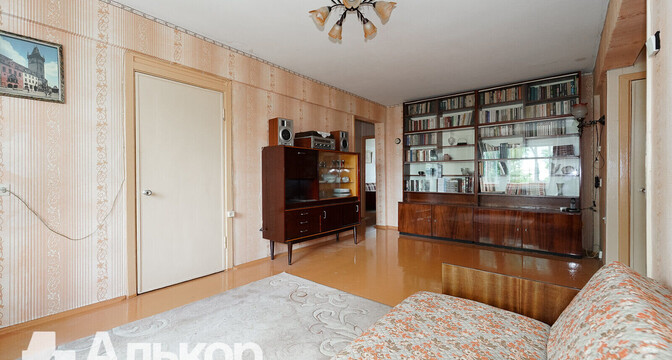 Трехкомнатная квартира продается на Ольшевского, 41 в пятиэтажном доме 1965 года постройки. Жилье находится на втором этаже и занимает 59,2 м², кухня — 6,2 м².