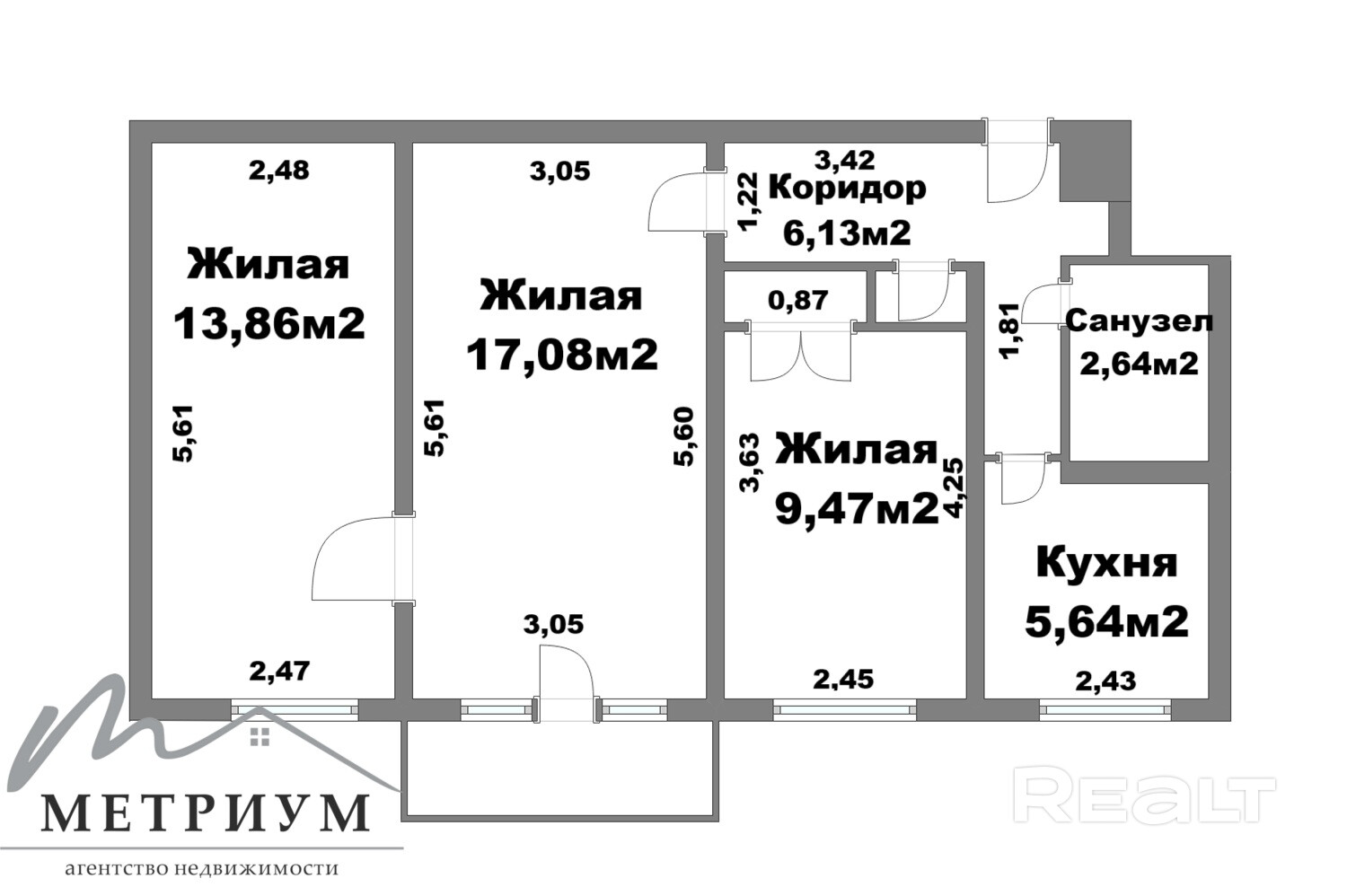 Метр стоит 1 264 доллара. Трешку оценили в 77 тысяч долларов.