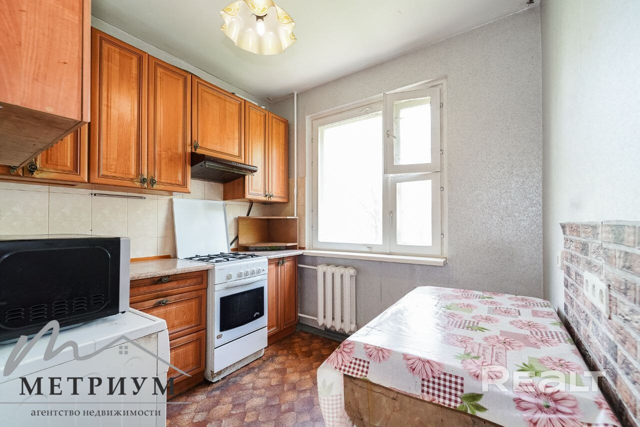 В 1966 году на Берута, 24/1 был построен пятиэтажный дом. Теперь на четвертом продается трешка площадью 56,5 м². На кухню отведено 5,64 м². В 2010 году в здании прошел капремонт.