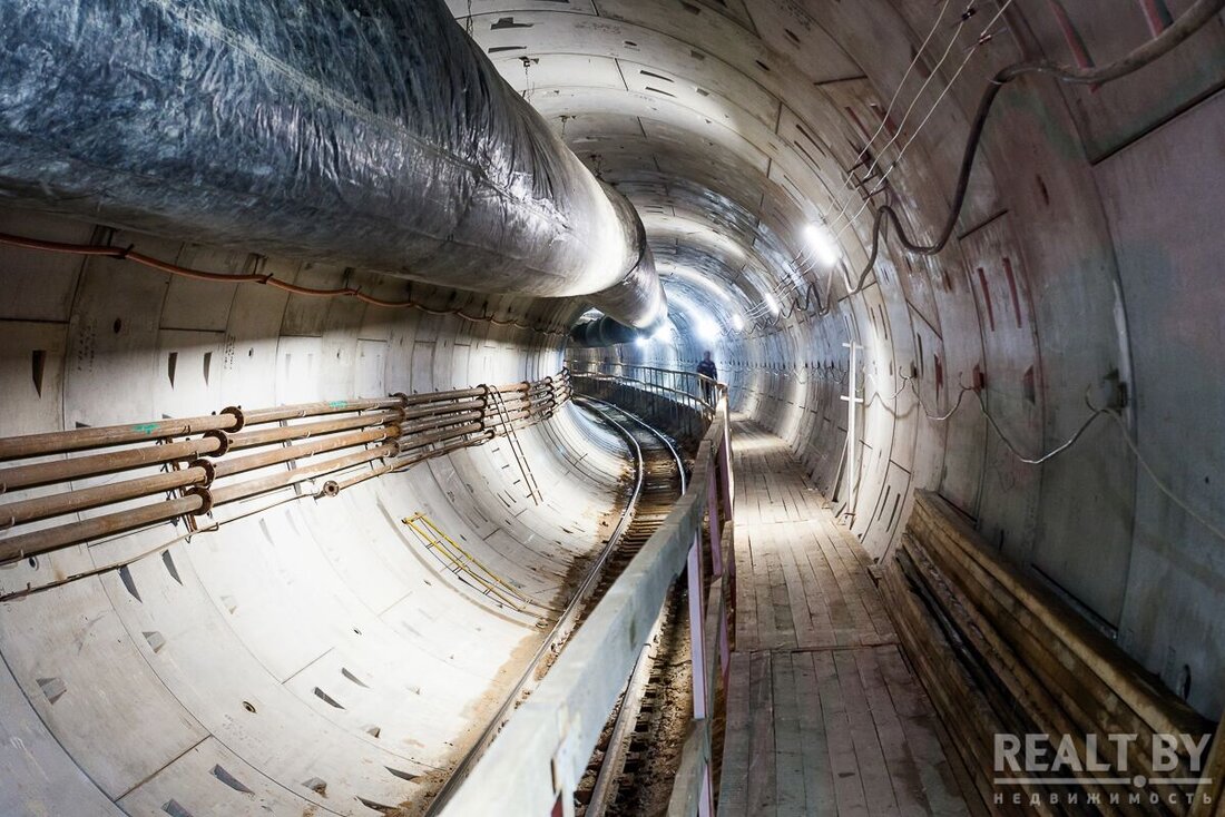 — Сейчас ведутся строительно-монтажные работы по перекладке инженерных сетей и коммуникаций, приступили к основному этапу возведения. Уже завершены строительство монтажно-щитовой камеры, монтаж тоннелепроходческого механизированного комплекса «Алеся», охранные мероприятия для зданий и сооружений, подготовительные работы для начала возведения новых станций метро «Парк Дружбы народов», «Комаровская» и «Переспа», — рассказал заместитель председателя Мингорисполкома Александр Черников. — 25 июня для продления поочередно двумя тоннелями более 6 км Зеленолужской линии запускаем «Алесю». Этот тоннелепроходческий комплекс состоит из щита и восьми технологических тележек, обеспечивающих его работу, включая нулевую, где расположена кабина оператора. Он способен прокладывать тоннель диаметром 6 м. Отмечу, это первая такая техника в истории белорусского метростроения.