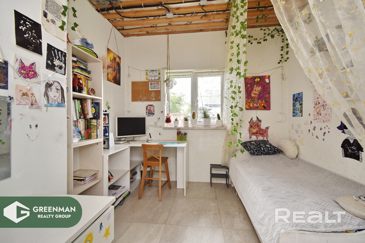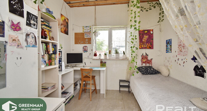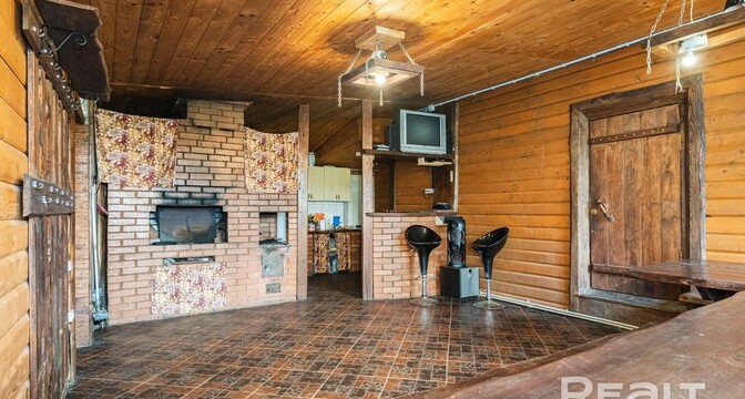 Самый дешевый стоит 80 000 долларов. Он деревянный, обложен кирпичом, но не очень старый — построен в 1998 году. Общая площадь 98 м2, есть вода, газ, санузел. Участок 16,7 сотки, на нем 3 пристройки, 5 сараев, летняя кухня, баня, гараж, подвал, погреб.
