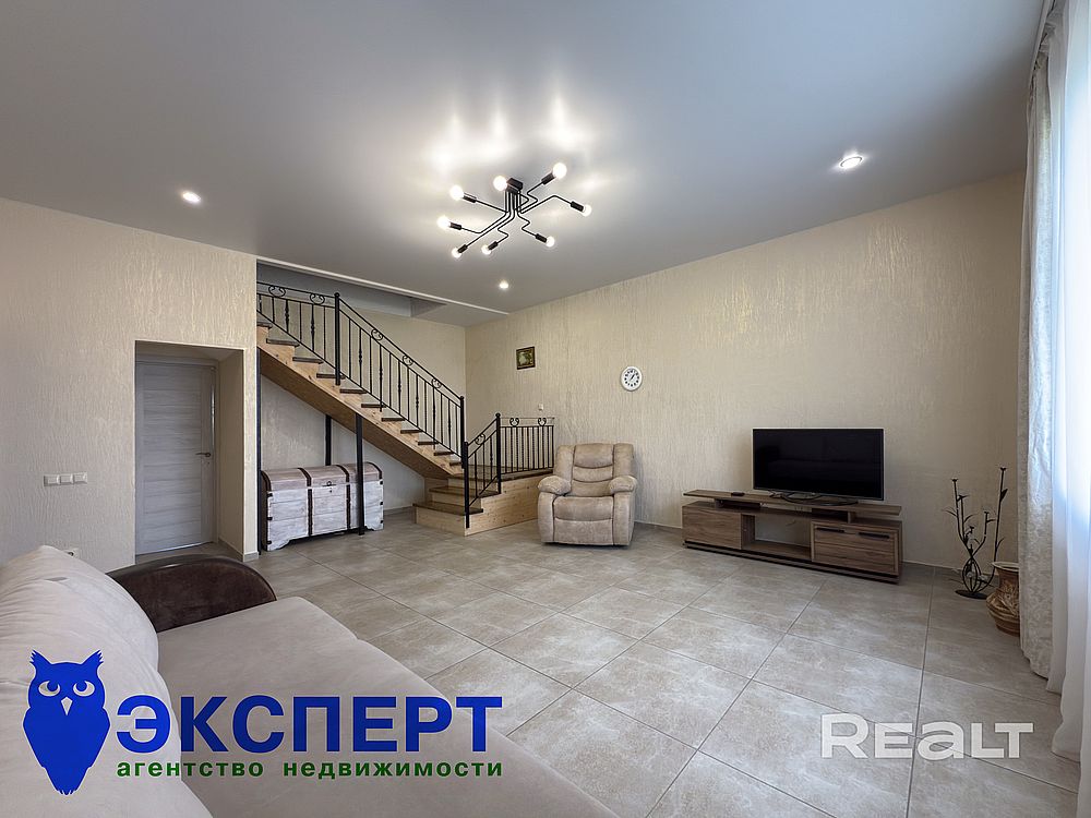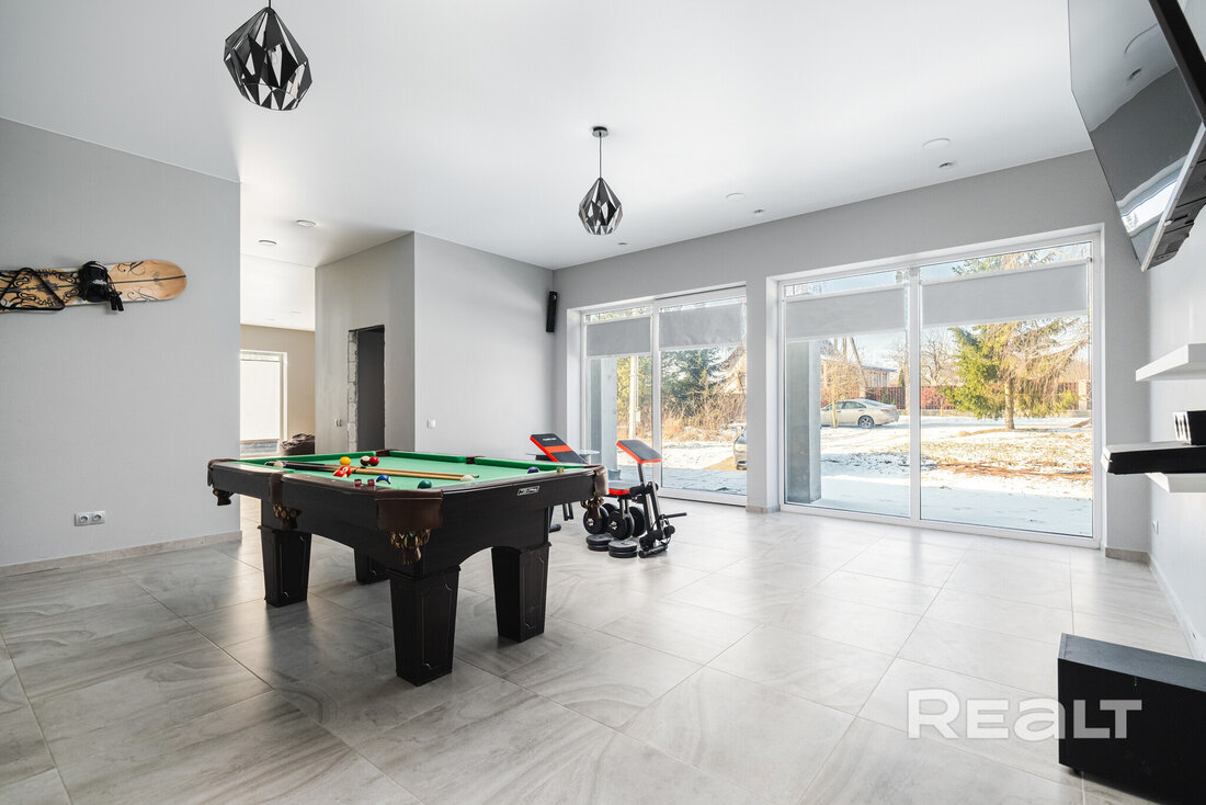 Общая площадь — 178,1 м2. На жилом этаже расположены мастер-спальня с санузлом и гардеробной, две детские комнаты, гостевая спальня, гостиная-кинозал, кухня, два санузла, коридор, тамбур и две террасы.